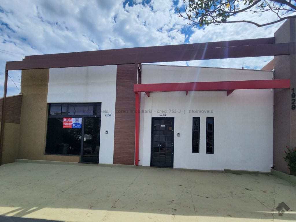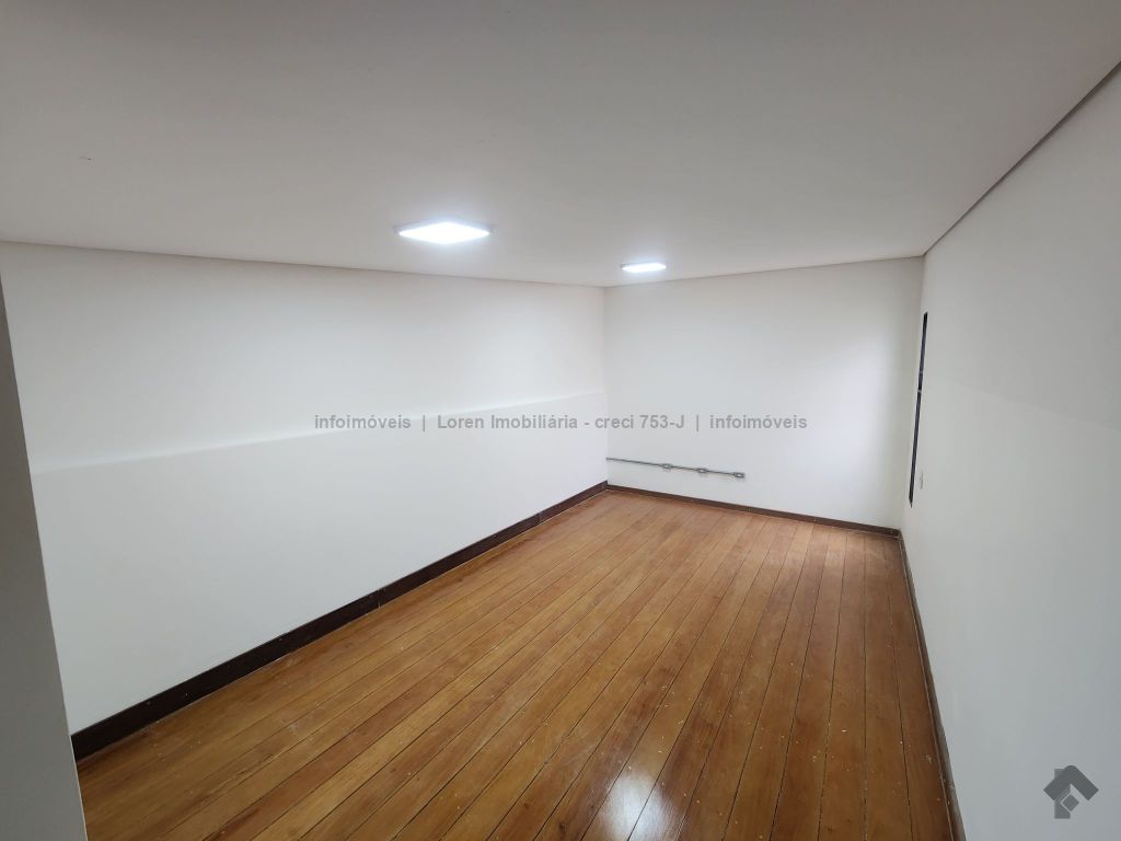 Salão comercial de esquina, com recepção, escritório, 2 banheiros, área de serviço/copa e mezanino, sendo térreo com 88 m² e mezanino com 16 m², de excelente padrão, com piso de porcelanato e forro de gesso, ideal para escritório ou comércio.