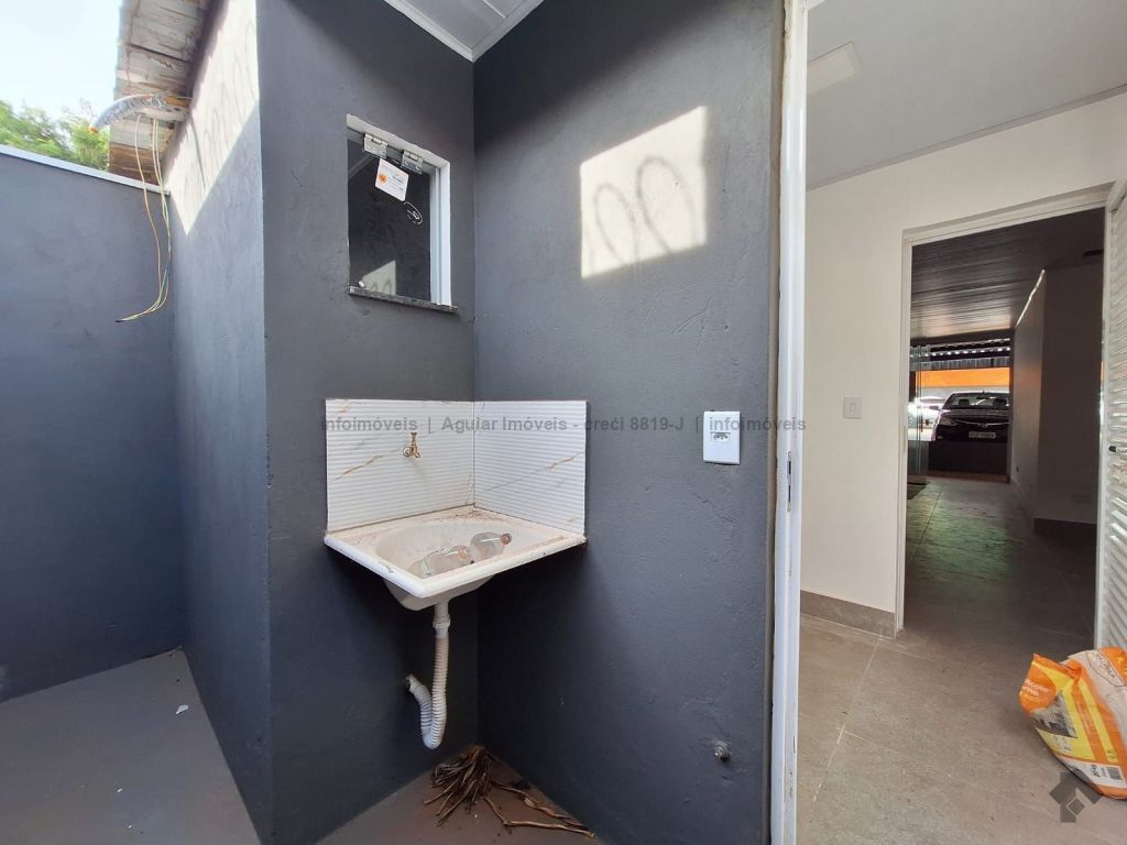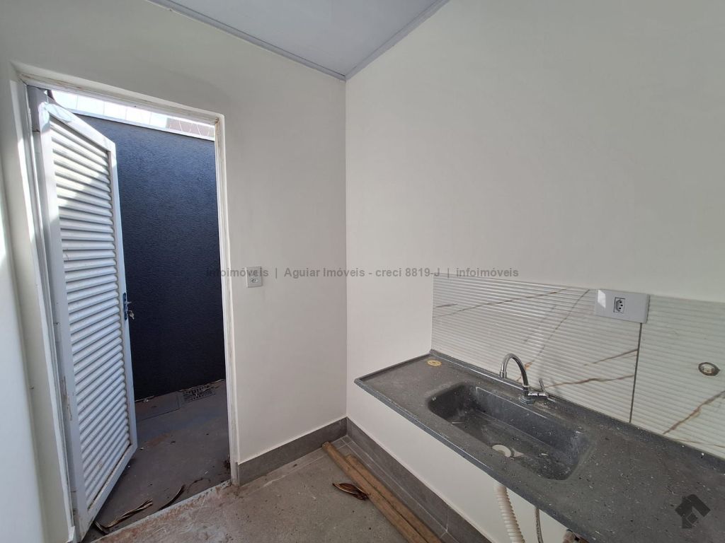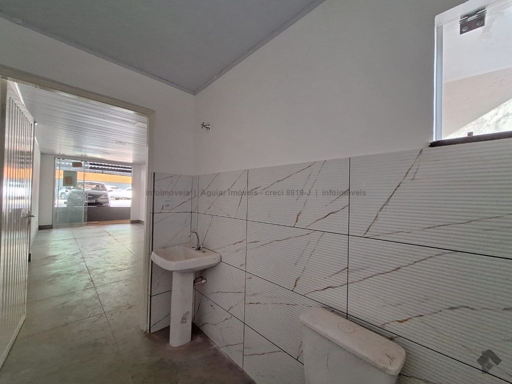 Sala grande com 01 banheiro PNE, copa, área de serviço e 01 garagem.