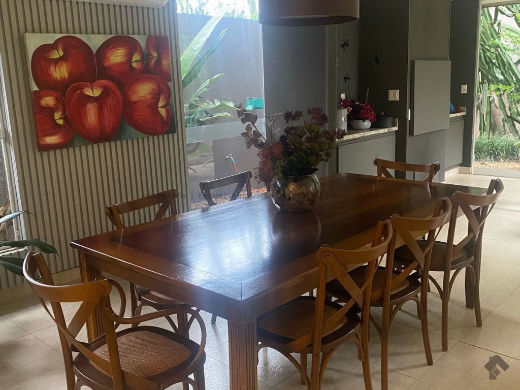 Excelente sobrado em condomínio, contendo três suítes com armários embutidos, sala para três ambientes, cozinha rica em armários, jardim, área gourmet com varanda, área de serviço, lavabo, duas vagas de garagem cobertas e sacada com vista privilegiada para a cidade e aquário do Pantanal.