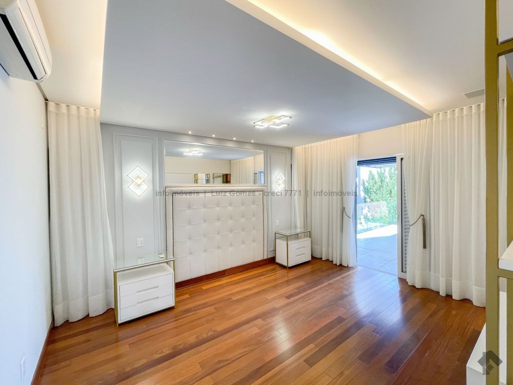 A apenas 300 metros do Parque das Nações Indígenas, este sobrado oferece ambientes integrados e elegantes: hall acolhedor, salas com pé-direito duplo e lareira, além de uma cozinha gourmet com toque rústico, totalmente planejada e equipada com forno e fogão à lenha. A suíte máster é um refúgio com sacada privativa e acabamentos de alto padrão. Duas suítes adicionais completam a área íntima com conforto e requinte. No térreo, espaço versátil para escritório ou hóspedes e um apartamento de serviço completo. O lazer é um verdadeiro convite ao bem-estar, com piscina aquecida, hidromassagem e sauna integrada.