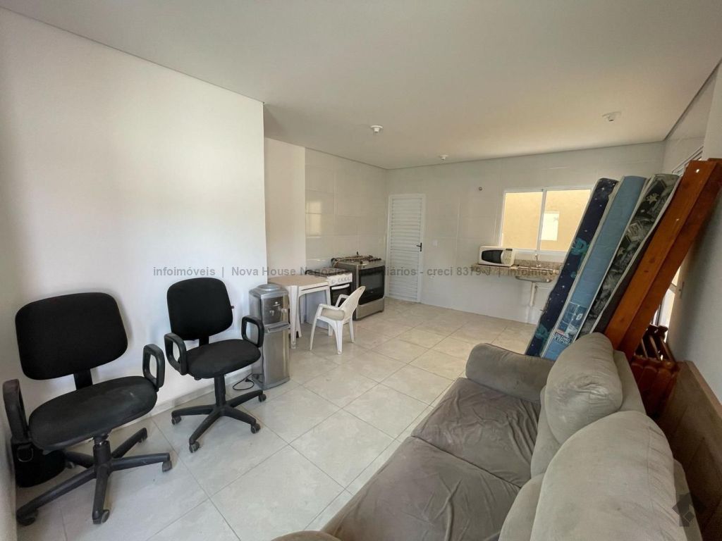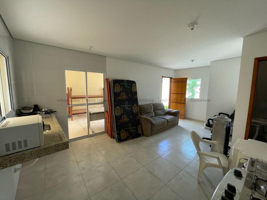 Sala, cozinha, lavabo, banheiro, 01 quarto, 01 suíte, 01 vaga.