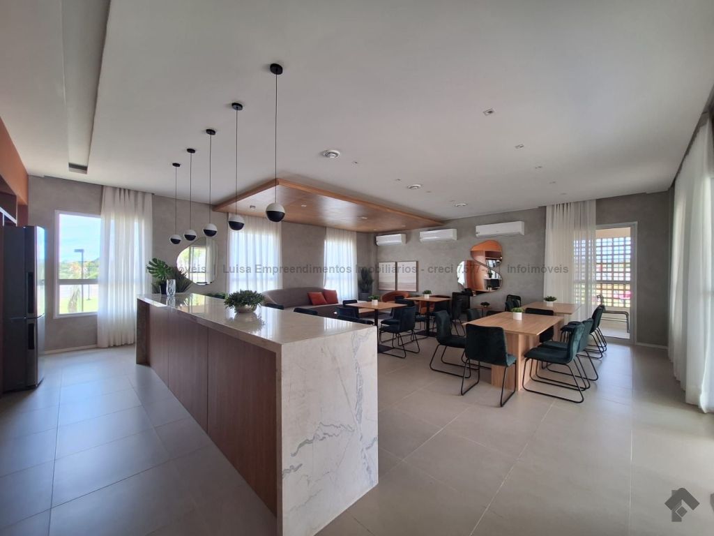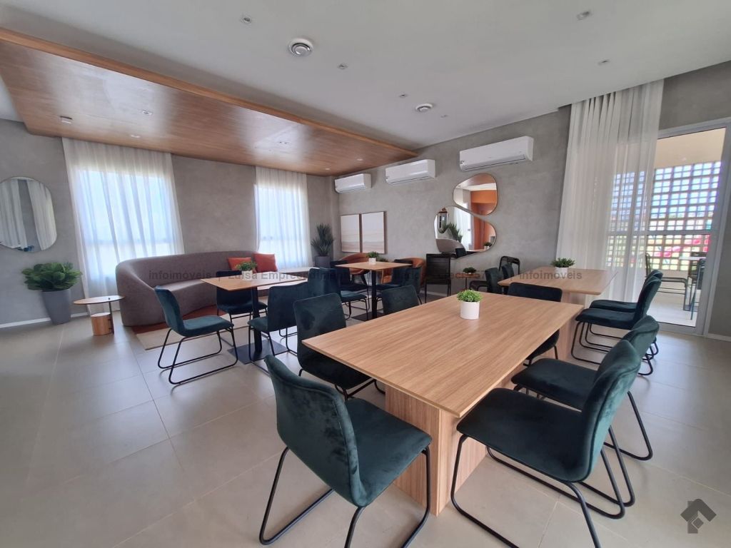 Com uma suíte com armários planejados, um quarto com armários, cozinha planejada, varanda gourmet, condomínio com uma moderna área de lazer, academia, salão de festas, piscinas, academia ao ar livre, quiosque com churrasqueira, campo, playground e portaria eletrônica. Área útil de 118,84 m². O imóvel possui sala de estar, sala de jantar, lavabo, lavanderia, cozinha, um banheiro social, varanda gourmet com churrasqueira, uma suíte e dois quartos.