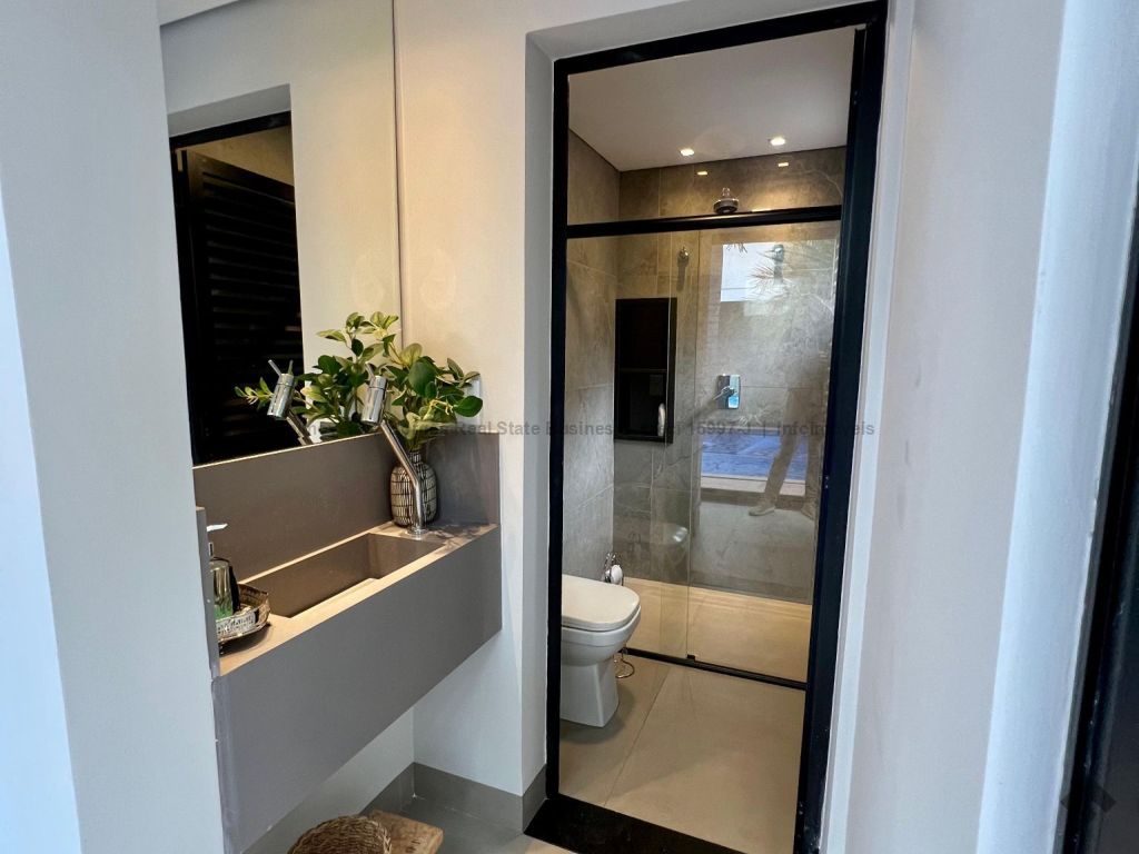 O imóvel possui 1 suíte master com sacada, closet e banheira, 1 suíte com armário e sacada, 2 suítes com armário. Sobrado rico em planejados, mobília completa com eletrodomésticos e pintura nova.