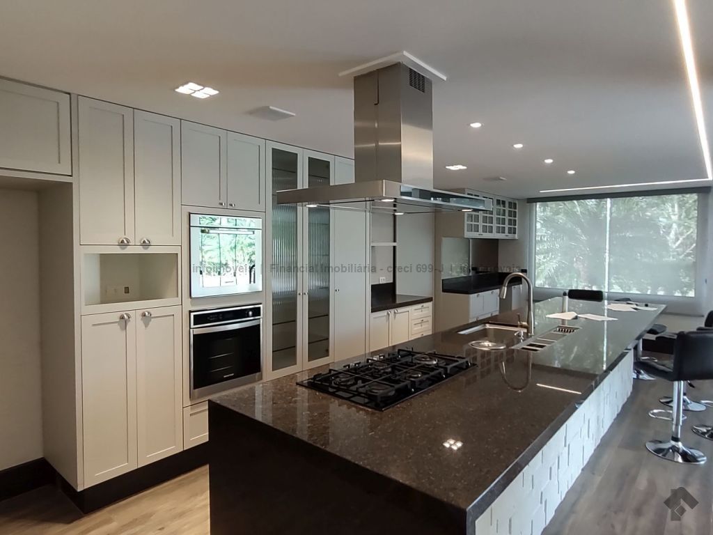 1 sala de estar 2 ambientes com ar condicionado, 1 sala de TV, 1 lavabo, 2 suítes com armários embutidos e ar condicionado, 1 suíte com armários embutidos e ar condicionado, sacada, 1 cozinha com armários embutidos, fogão, forno e coifa, 1 área gourmet, 1 varanda, 1 banheiro social, 2 despensas, 1 piscina, 1 área de serviço com armários embutidos, 3 vagas de garagem.