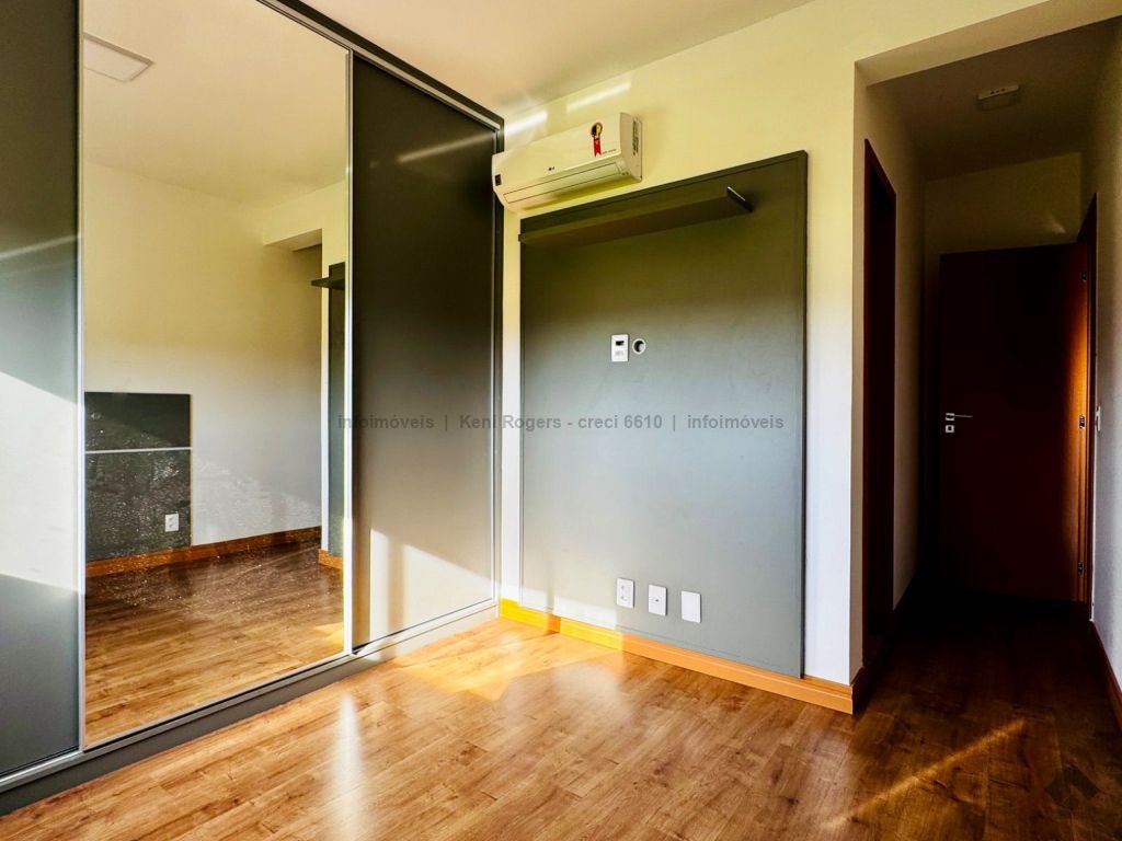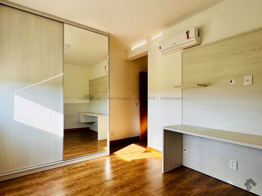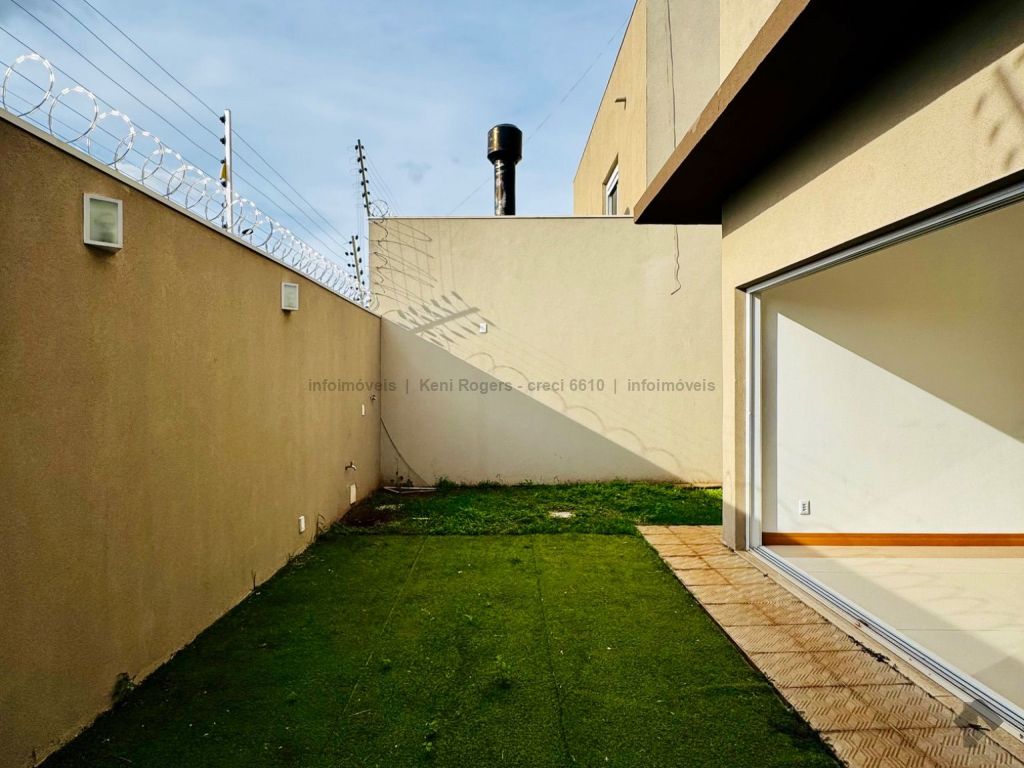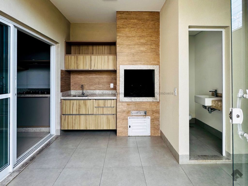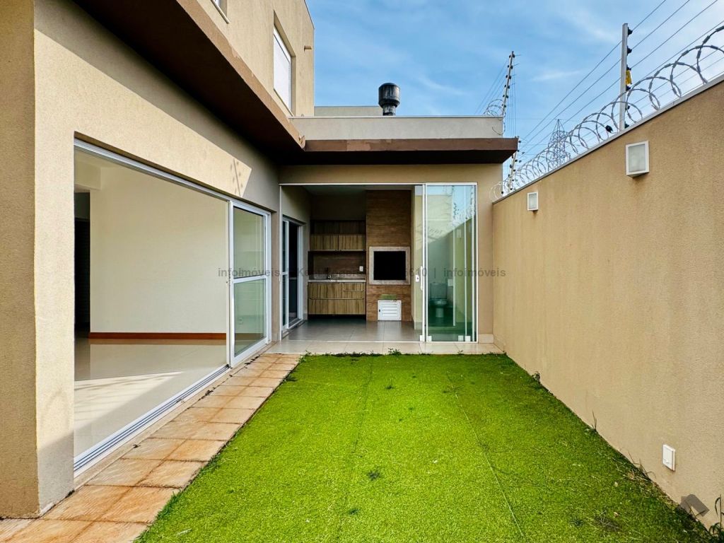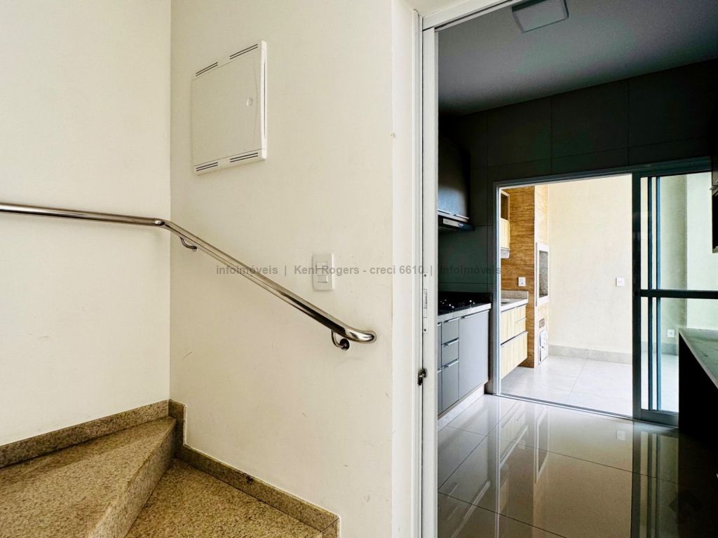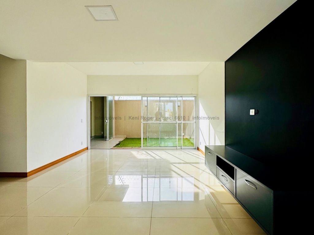 Piso inferior com sala de TV com painel planejado, rack, ar-condicionado, sala de estar, cozinha com armários planejados, cooktop, coifa, área de serviço com armários planejados, área gourmet com armários planejados, churrasqueira, banheiro de serviço, quintal gramado, garagem para 2 veículos coberta. Piso superior dispõe de 3 suítes com armários planejados, painel e ares-condicionados, todos os banheiros das suítes com armários planejados e box de vidro temperado.