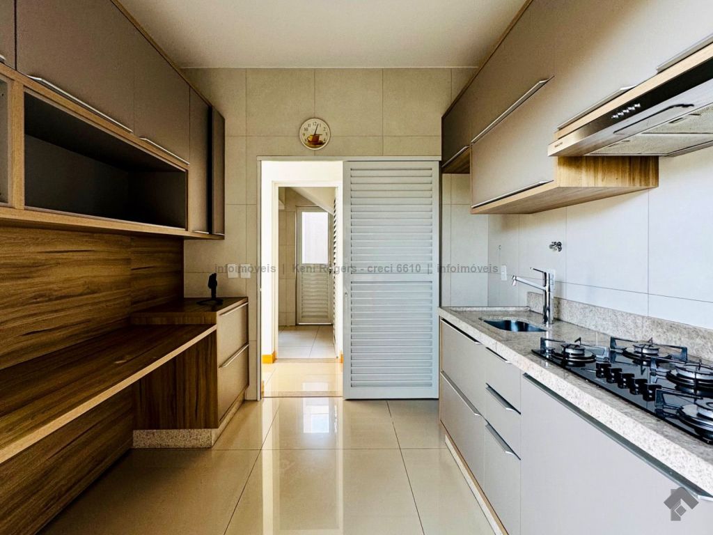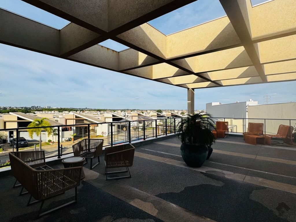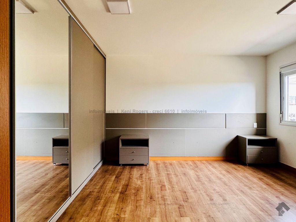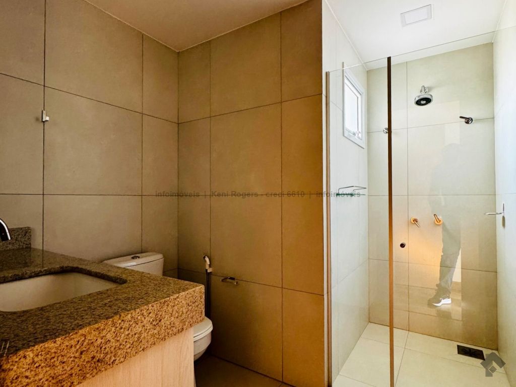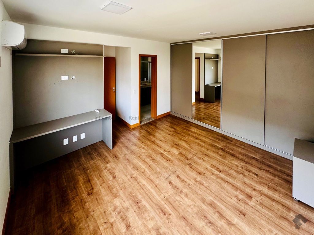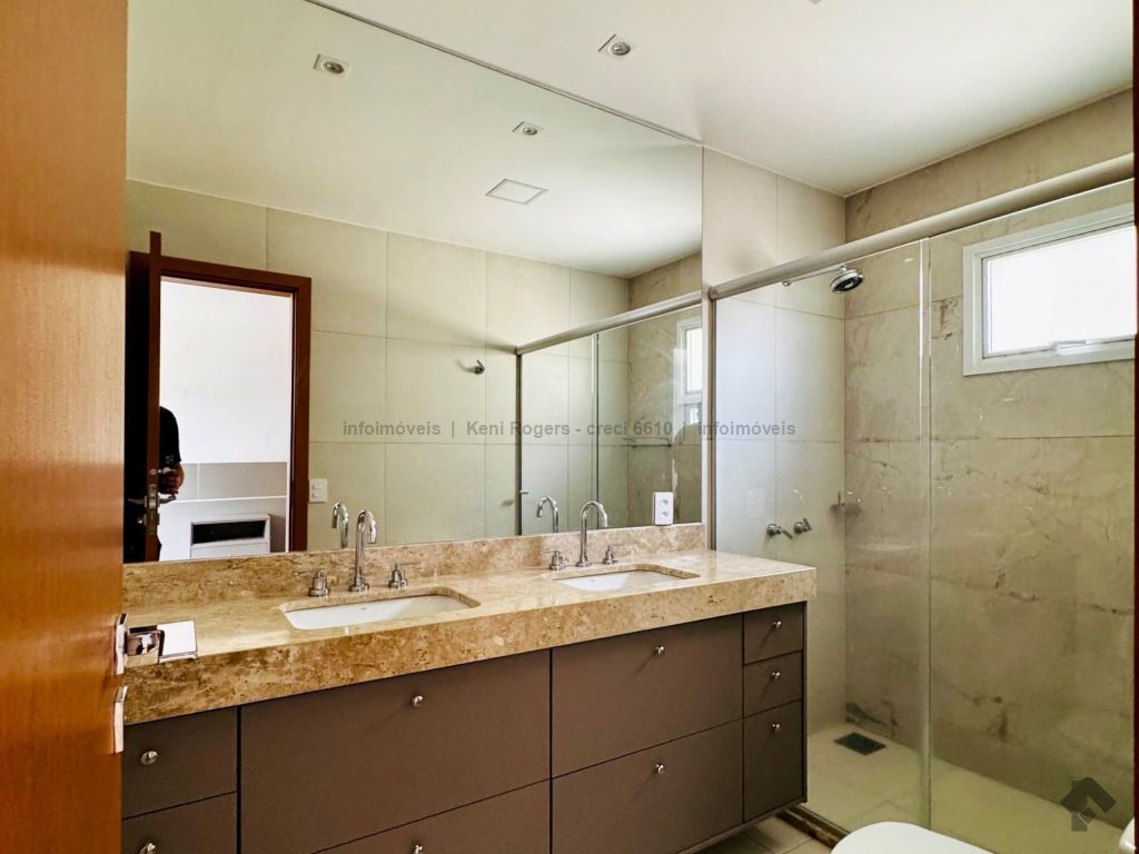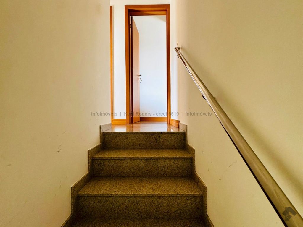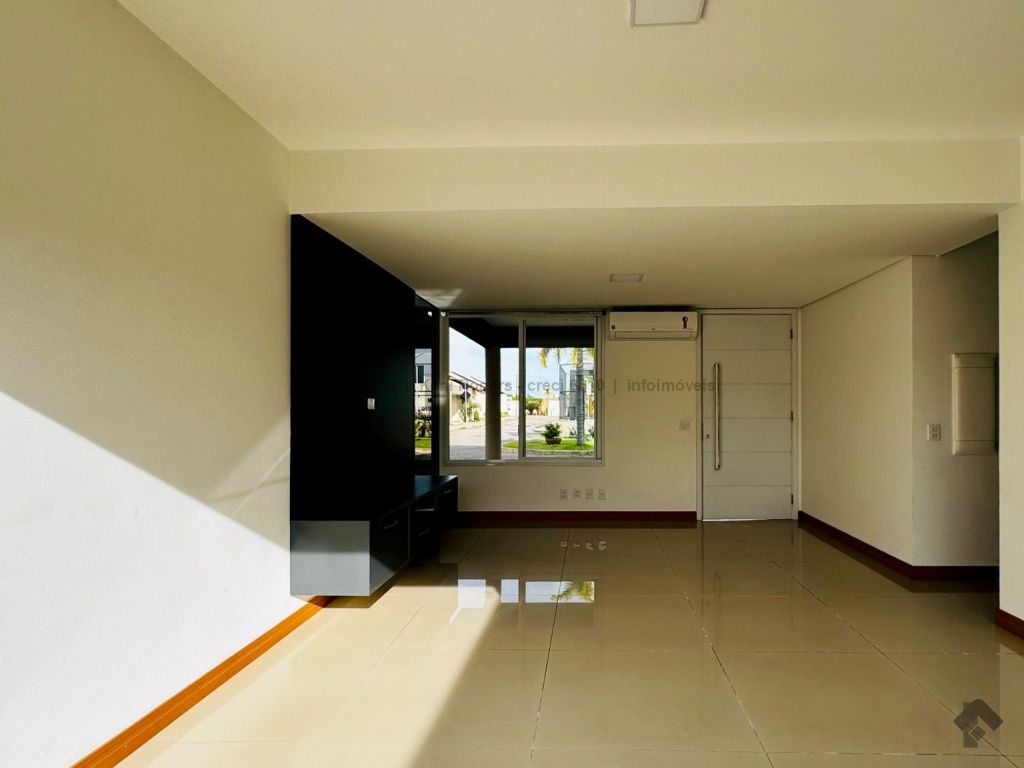 Piso inferior com sala de TV com painel planejado, rack, ar-condicionado, sala de estar, cozinha com armários planejados, cooktop, coifa, área de serviço com armários planejados, área gourmet com armários planejados, churrasqueira, banheiro de serviço, quintal gramado, garagem para 2 veículos coberta. Piso superior dispõe de 3 suítes com armários planejados, painel e ares-condicionados, todos os banheiros das suítes com armários planejados e box de vidro temperado.
