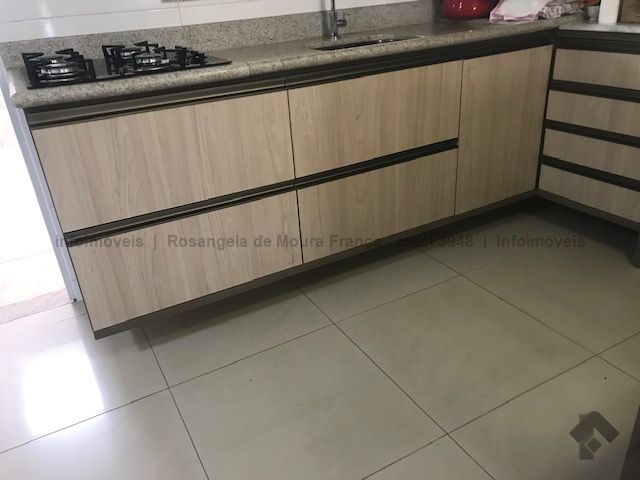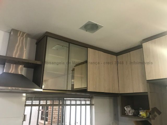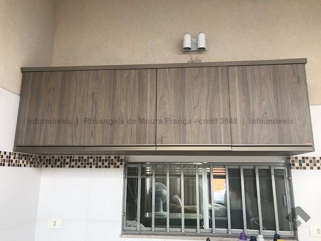 Sobrado com sala em dois ambientes com lustres e painel, lavabo, cozinha planejada com coifa e cooktop, varanda gourmet com churrasqueira e armários, depósito. Piso superior com 2 suítes com armários, ar condicionado e sacada com blindex.