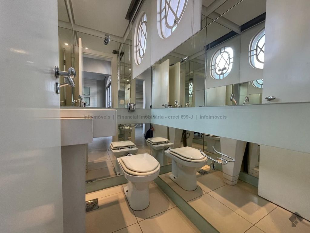 4 vagas de garagem, 1 churrasqueira, 1 piscina, 1 lavanderia com armário embutido, 1 banheiro de serviço, 1 depósito, 2 lavabos, 2 salas com 2 ambientes, 1 cozinha com armário embutido, 1 quarto, 1 suíte com armário embutido e ar-condicionado, 1 quarto com armário embutido, 1 quarto com armário embutido e ar-condicionado, 1 banheiro social com box e gabinete.
