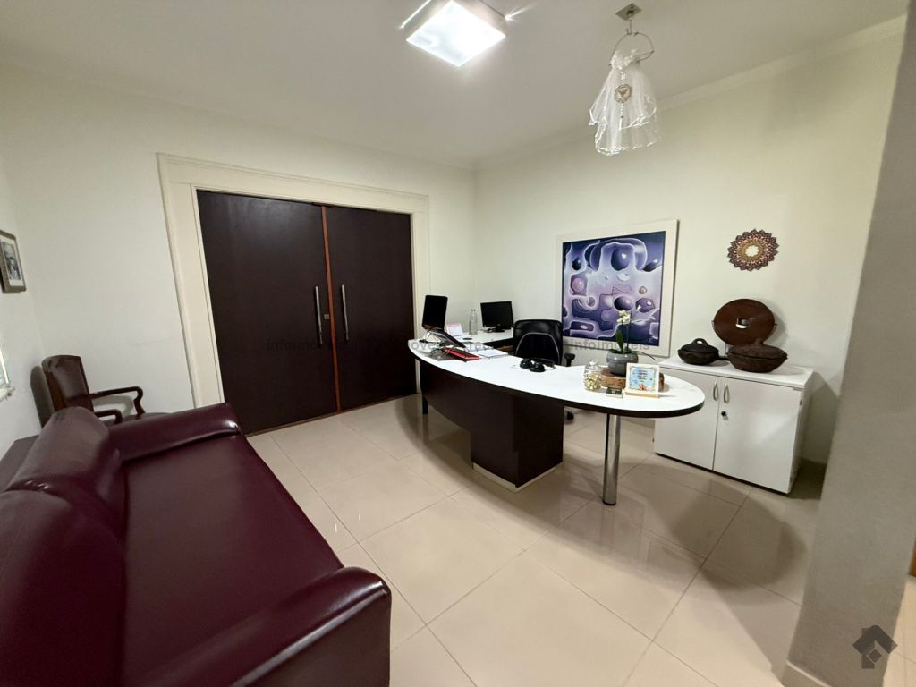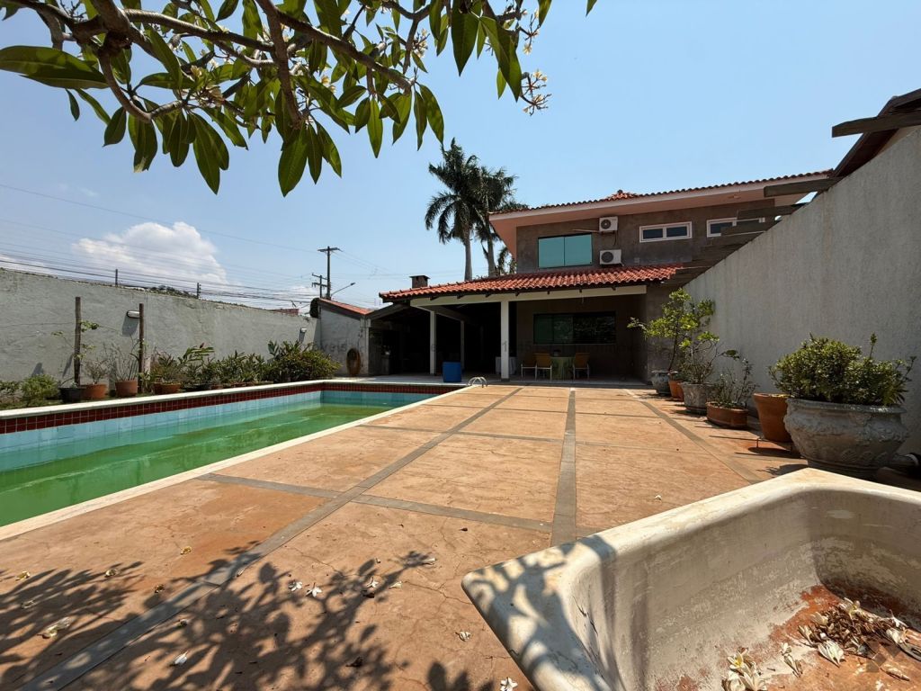 Área construída: 800m², área total: 1.300m². Distribuição do imóvel: andar superior com 2 suítes, 2 salas e 1 banheiro. Térreo com 1 sala ampla, sala dividida em 3 ambientes (150m²), cozinha. Área externa com piscina, varanda com churrasqueira, quadra e área verde.