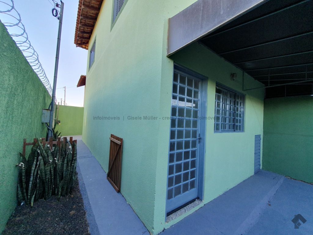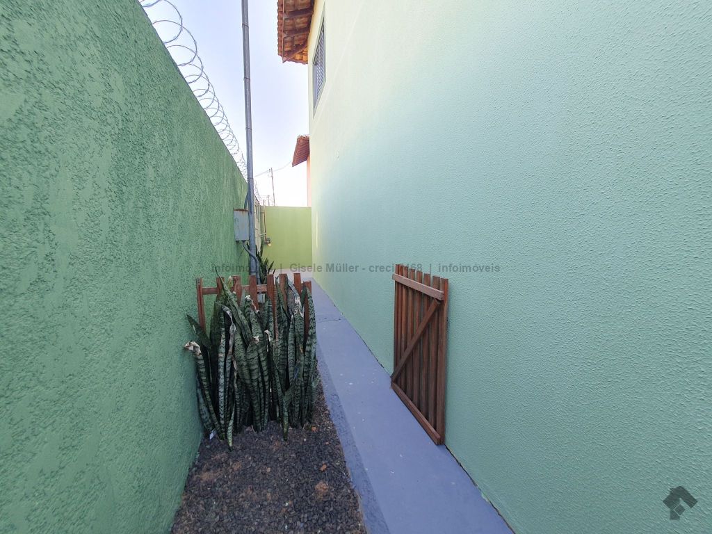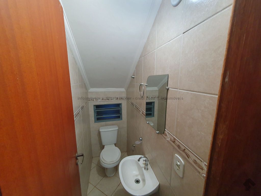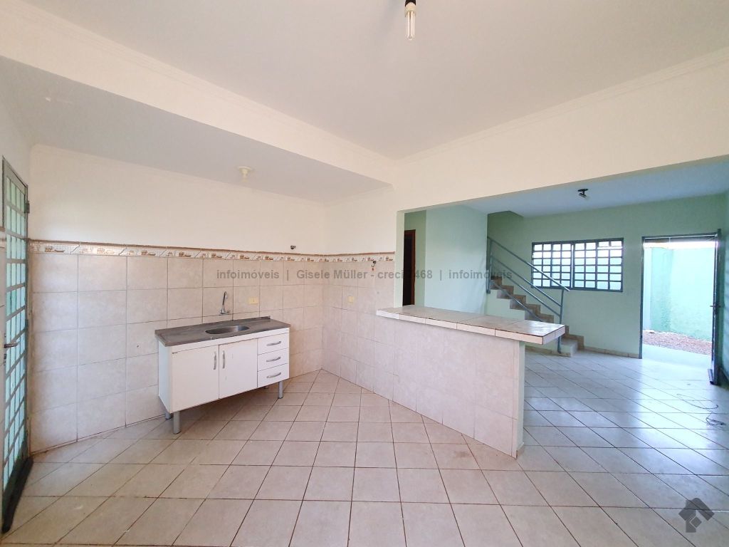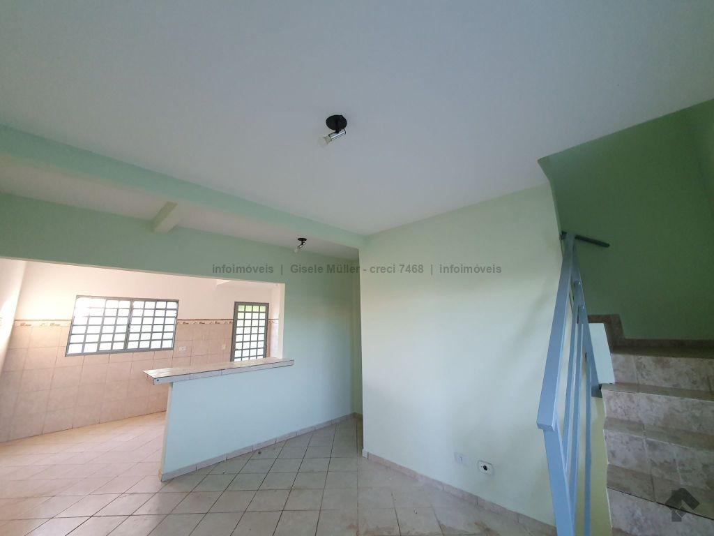 Sobrado a 1 quadra do asfalto, possui no piso inferior sala com cozinha americana, lavabo e área de serviço. A casa tem 02 vagas de garagem descobertas com portão de elevação e motor elétrico, concertina protegendo todo o muro. No piso superior, 02 (dois) quartos e um banheiro social. Não possui quintal. Aceitamos pets.