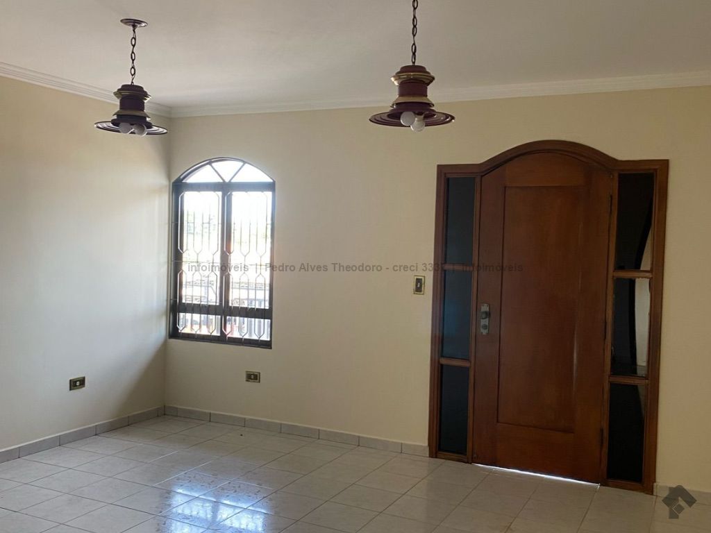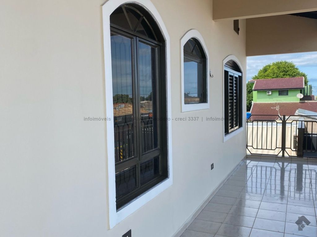 Sobrado com 3 quartos, todos com banheiro, sala grande e sacada em cima, embaixo sala grande, cozinha, despensa, varanda e lavanderia com banheiro, canil, garagem grande coberta.