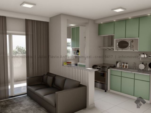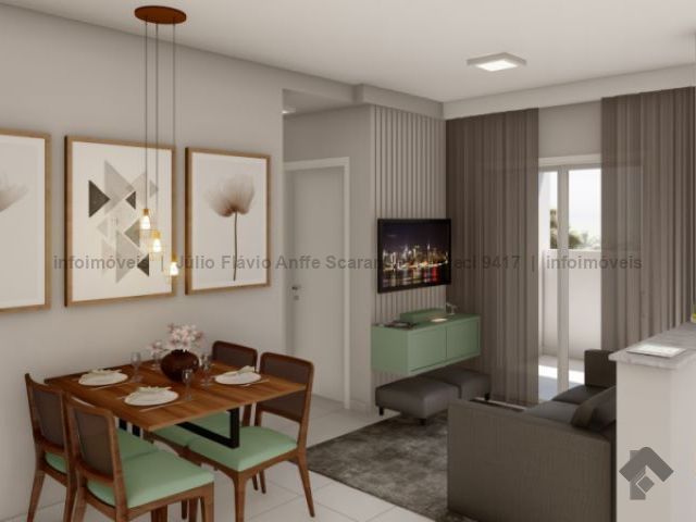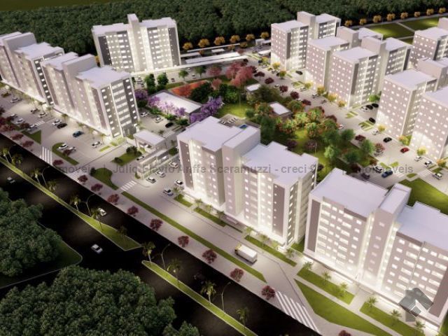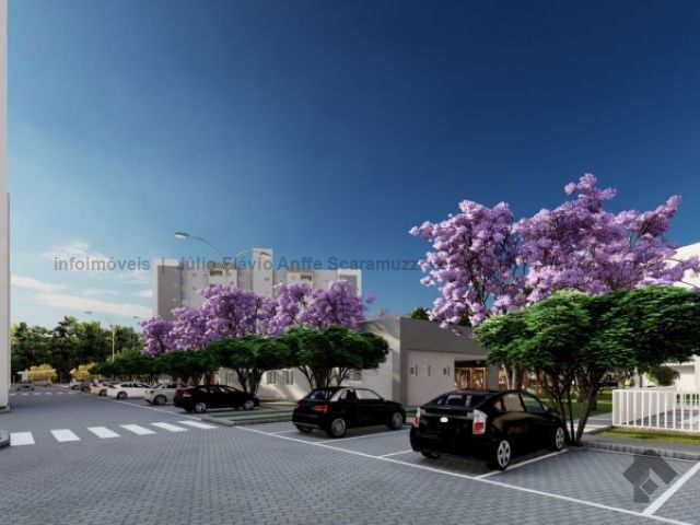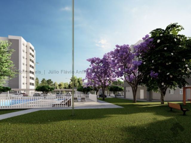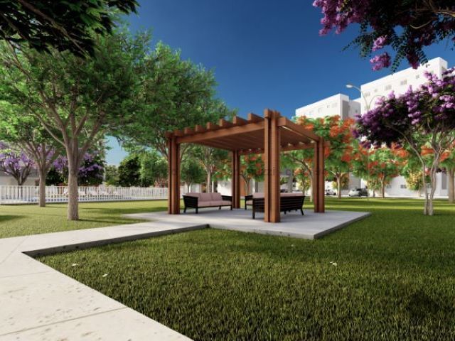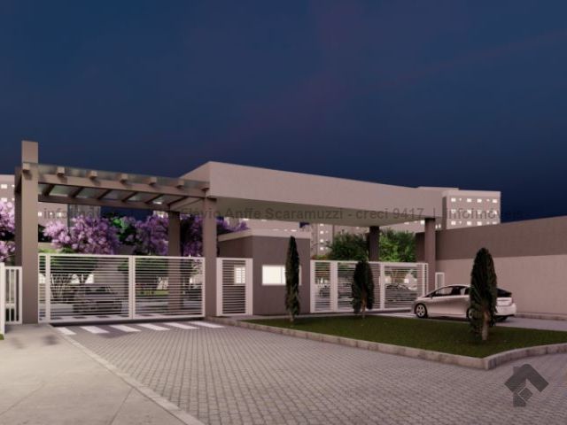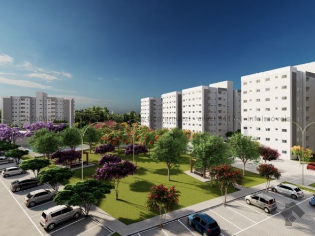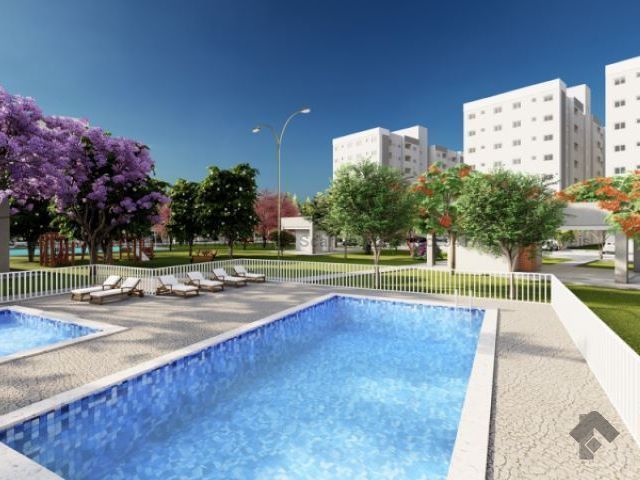 Apartamento de dois quartos, sacada, em condomínio fechado, com elevador e vaga de garagem. Vagas para carros e motos, bicicletário, piscinas, quadra poliesportiva, academia, salão de festas e horta.