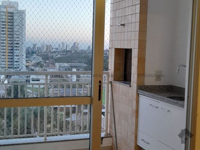 Apartamento com sala dois ambientes, sacada com churrasqueira, cozinha planejada, área de serviço com armário, WC social, um quarto com armários planejados, uma suíte com armário e ar-condicionado de gaveta, 03 vagas de garagem, sendo uma coberta e duas descobertas.