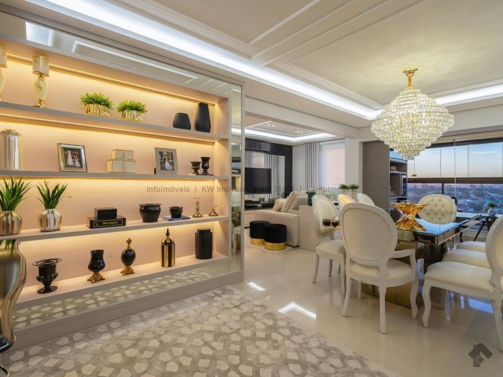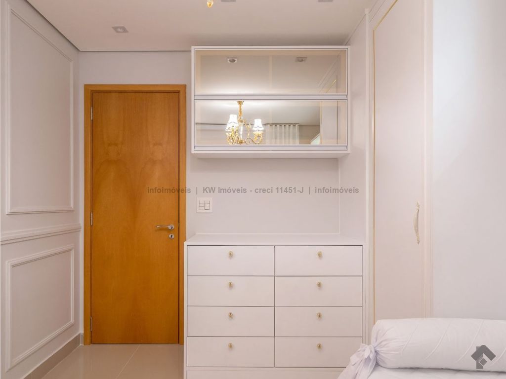 Apartamento rico em móveis planejados e decoração neoclássica, andar alto e vista deslumbrante para toda a cidade. 03 vagas de garagem, possui armários na garagem.