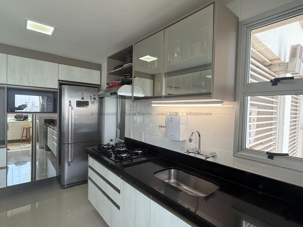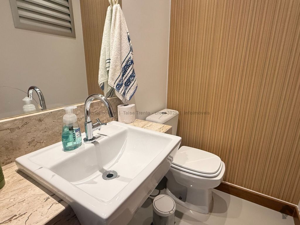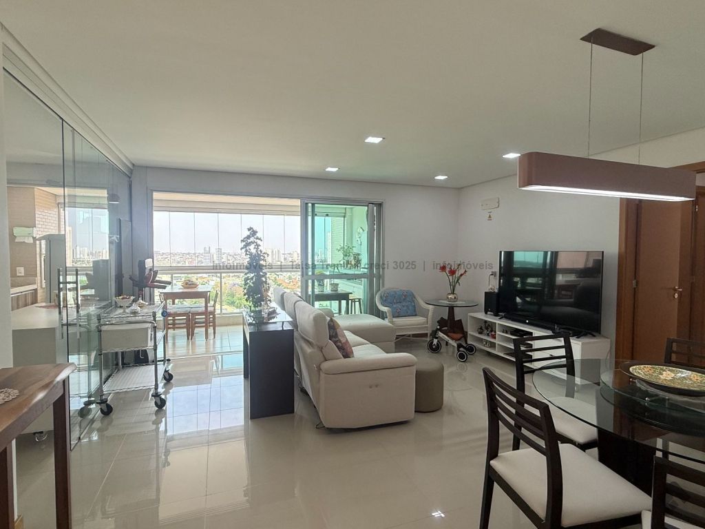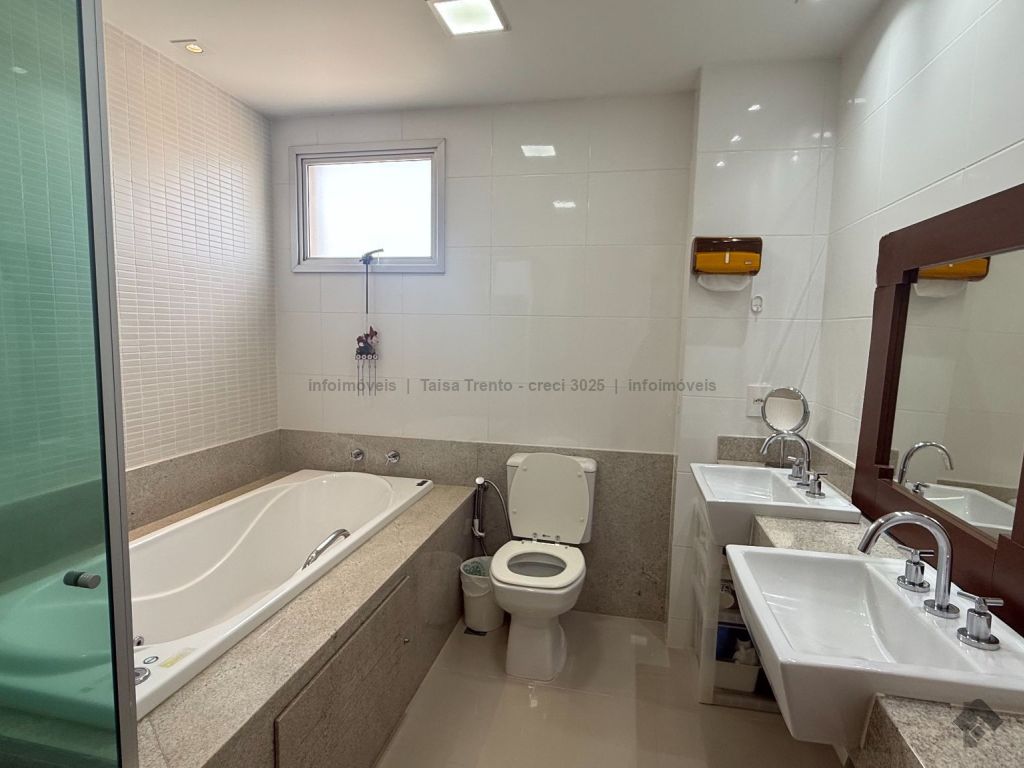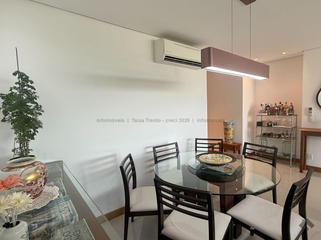 Apartamento localizado em andar intermediário, nascente, com quatro vagas de garagem. Este imóvel possui na parte social: sala de estar, sala de jantar e sala de TV, lavabo, cozinha planejada, sacada com churrasqueira, área de serviço com armários e banheiro de serviço. Já na parte íntima possui três suítes.