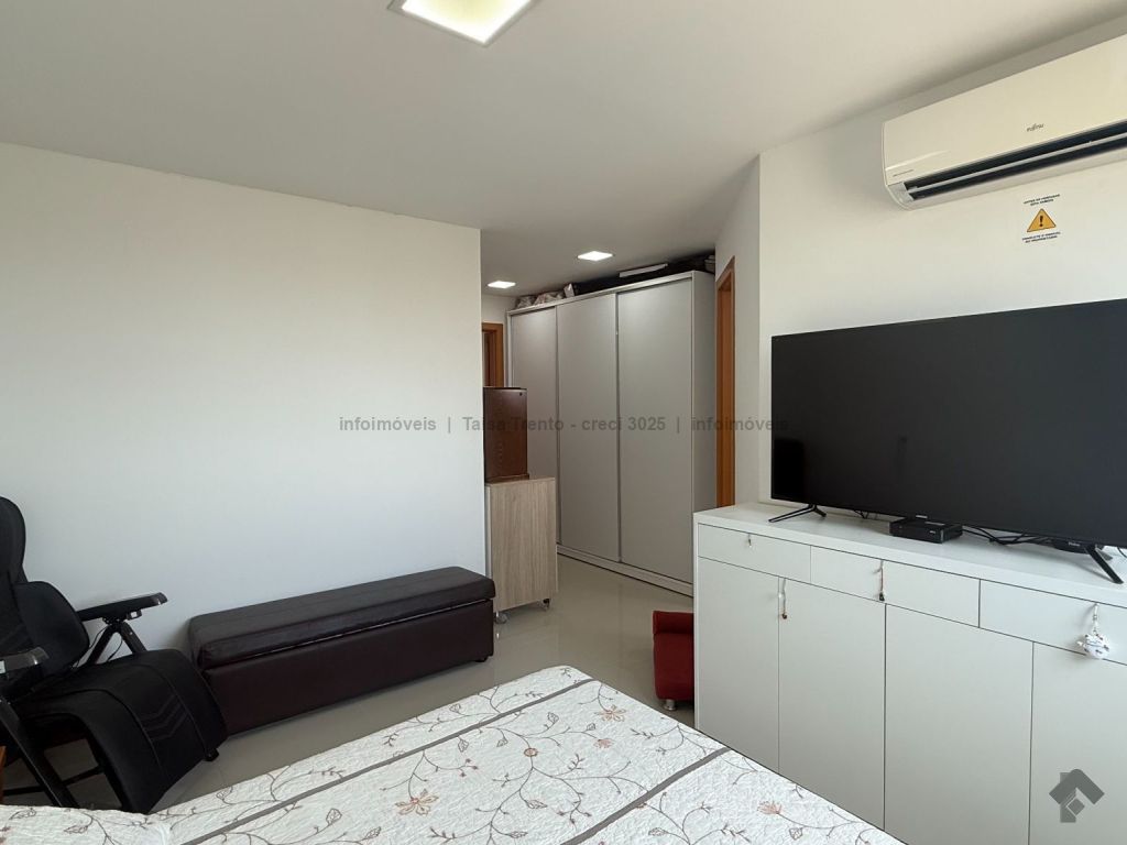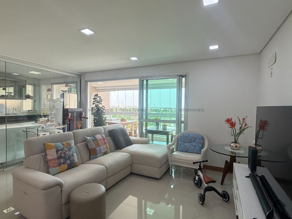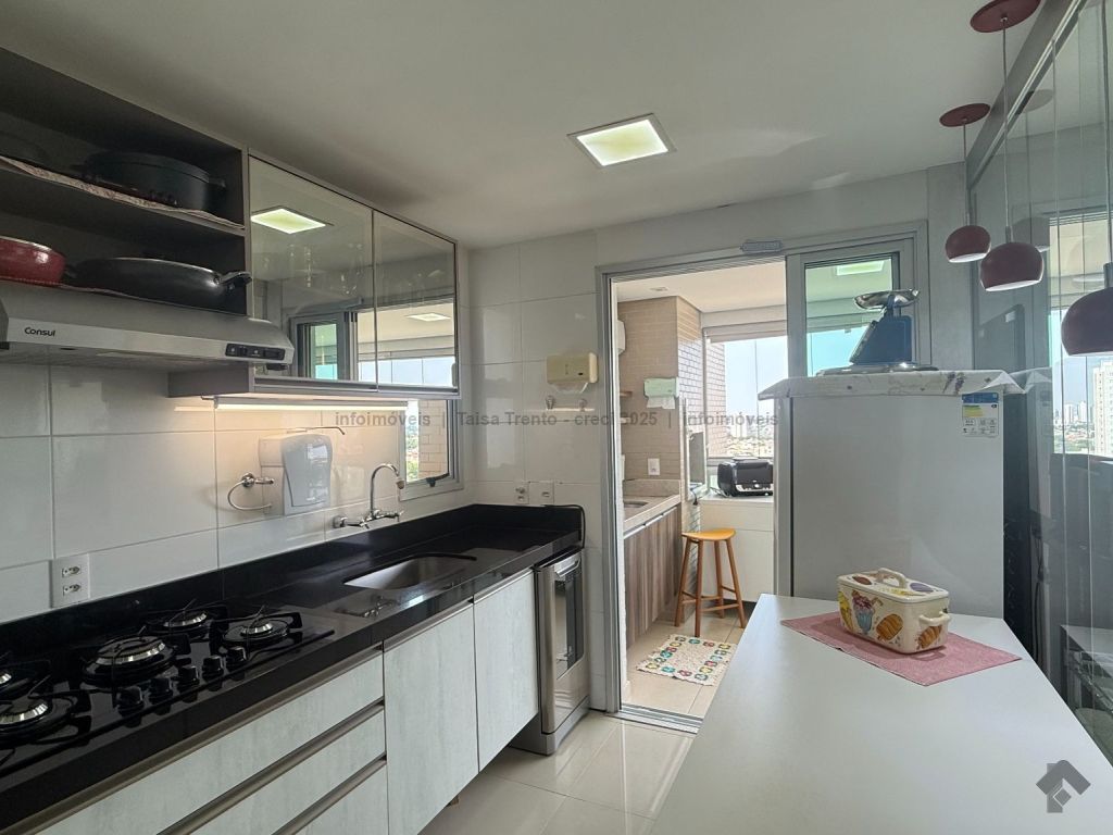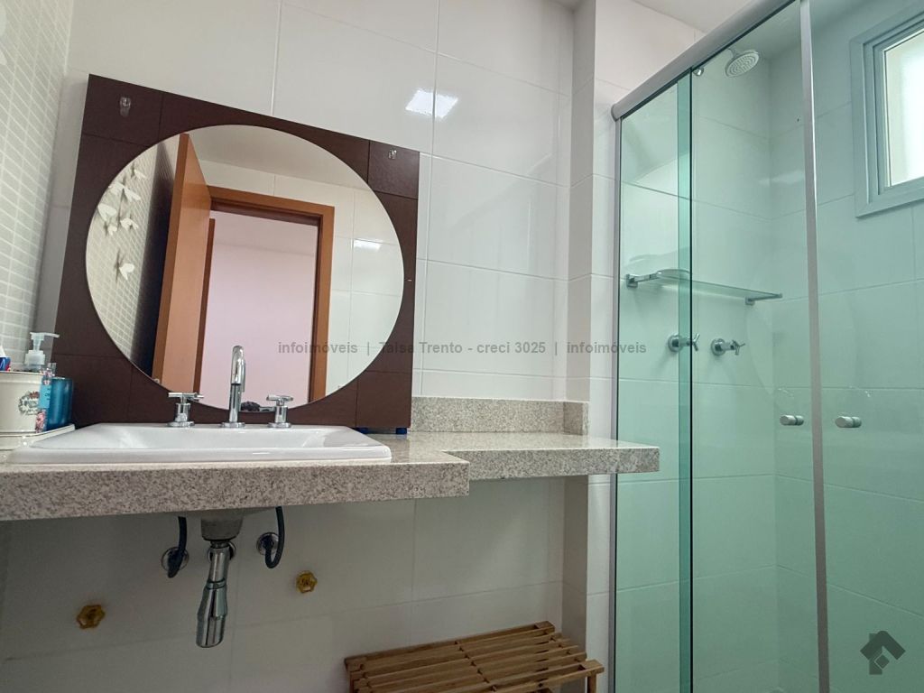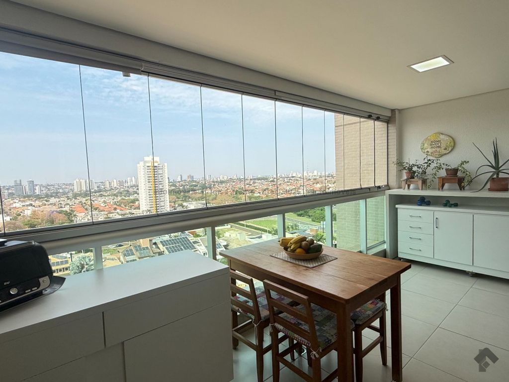Apartamento localizado em andar intermediário, nascente, com quatro vagas de garagem. Este imóvel possui na parte social: sala de estar, sala de jantar e sala de TV, lavabo, cozinha planejada, sacada com churrasqueira, área de serviço com armários e banheiro de serviço. Já na parte íntima possui três suítes.