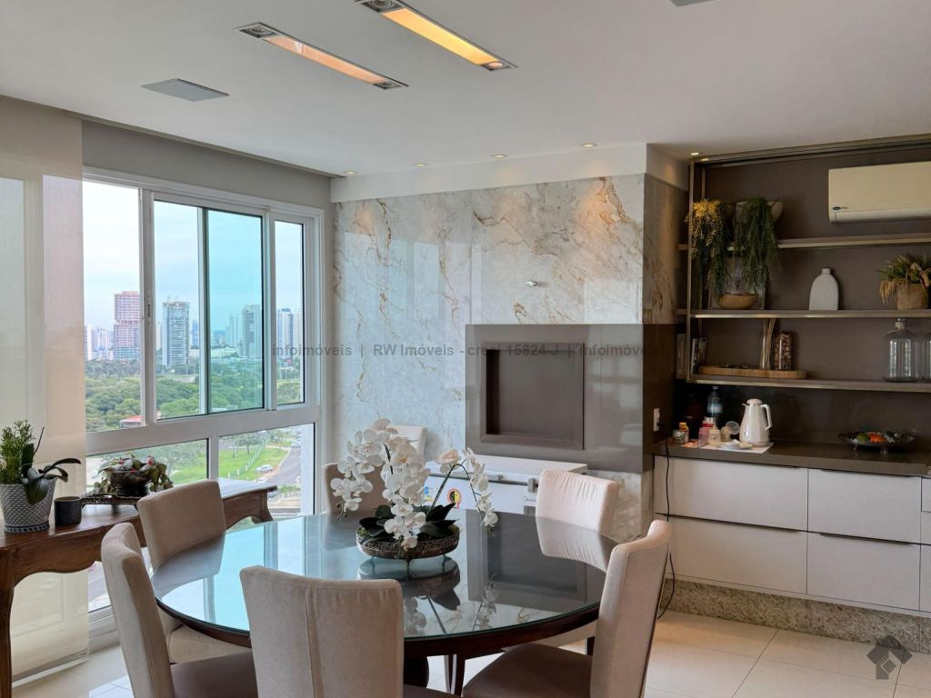 Localizado em frente ao Parque das Nações Indígenas, com uma vista deslumbrante e permanente para o verde. O imóvel possui 241 m² de área privativa, conta com três suítes, sendo uma master, além de uma quarta suíte atualmente utilizada como escritório. São quatro vagas de garagem localizadas próximas ao elevador, oferecendo ainda mais comodidade. Um imóvel que reúne conforto, sofisticação e uma das melhores localizações da cidade.