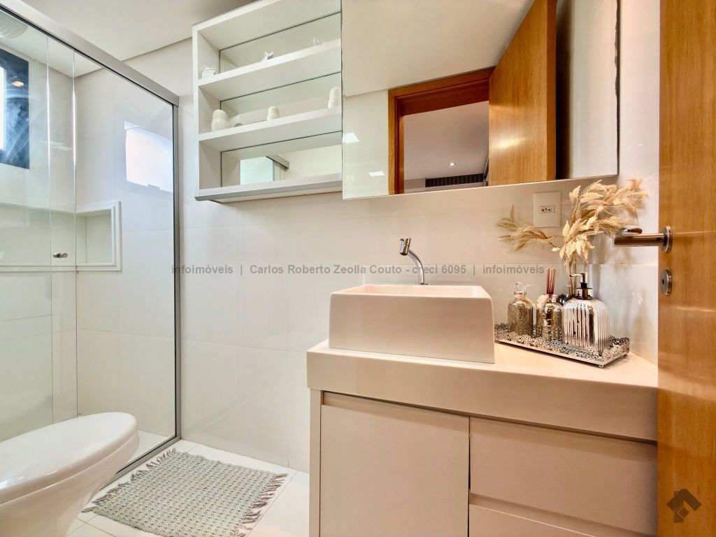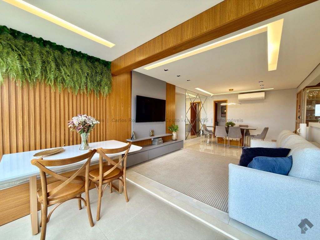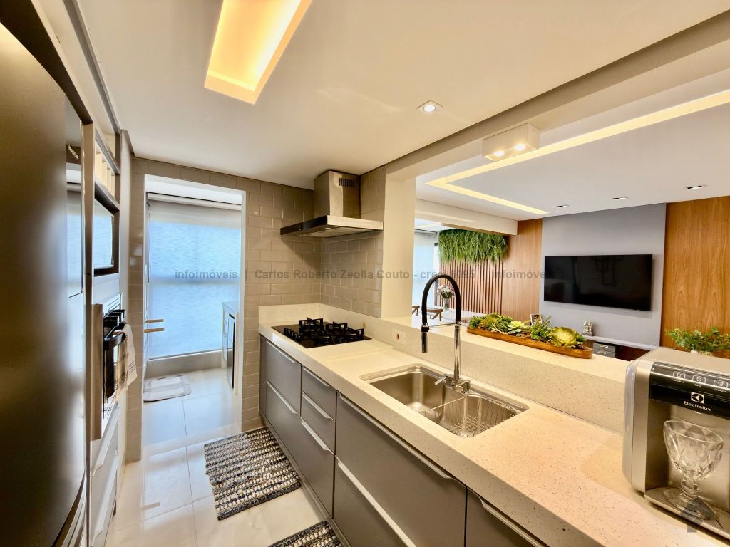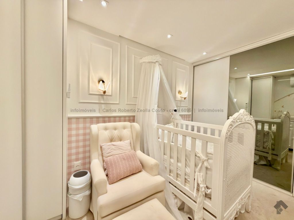 Sala, cozinha planejada, lavabo, lavanderia ampliada, 1 suíte ampla com closet, banheira e 2 cubas, 2 suítes completas de armários, ar condicionado em todos os ambientes. Todo reformado. Impecável. Além dos planejados fixos em todos os ambientes, ficam todos os móveis soltos e decoração da sala. Exceto: berço, cômoda, poltrona de amamentação e máquina de lavar da lavanderia. Todo o resto fica: ares, eletrodomésticos da cozinha, mesas e cadeiras, móveis soltos do escritório, cama de casal e escrivaninhas, sofá, tapete e cortina da sala, televisões.