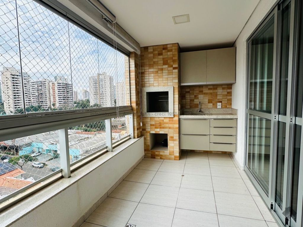 O apartamento possui lavabo, sala para 03 ambientes com painel, cozinha com planejados e cooktop e exaustor, sacada com churrasqueira, 03 quartos sendo 01 suíte, todos com planejados, lavanderia com planejado e aquecedor, 2 vagas de garagem coberta. O condomínio inclui área de lazer completa com academia, salão de festas, espaço gourmet para até 100 pessoas, brinquedoteca, sala de jogos, sauna, piscina adulto e infantil, quadra poliesportiva e playground.