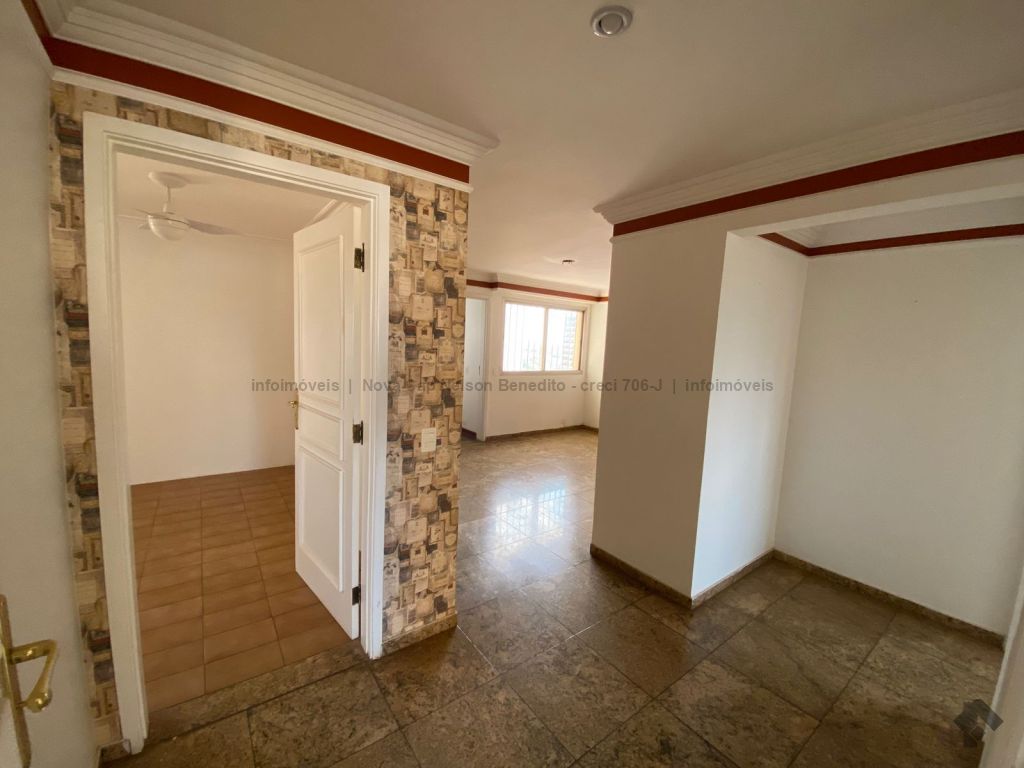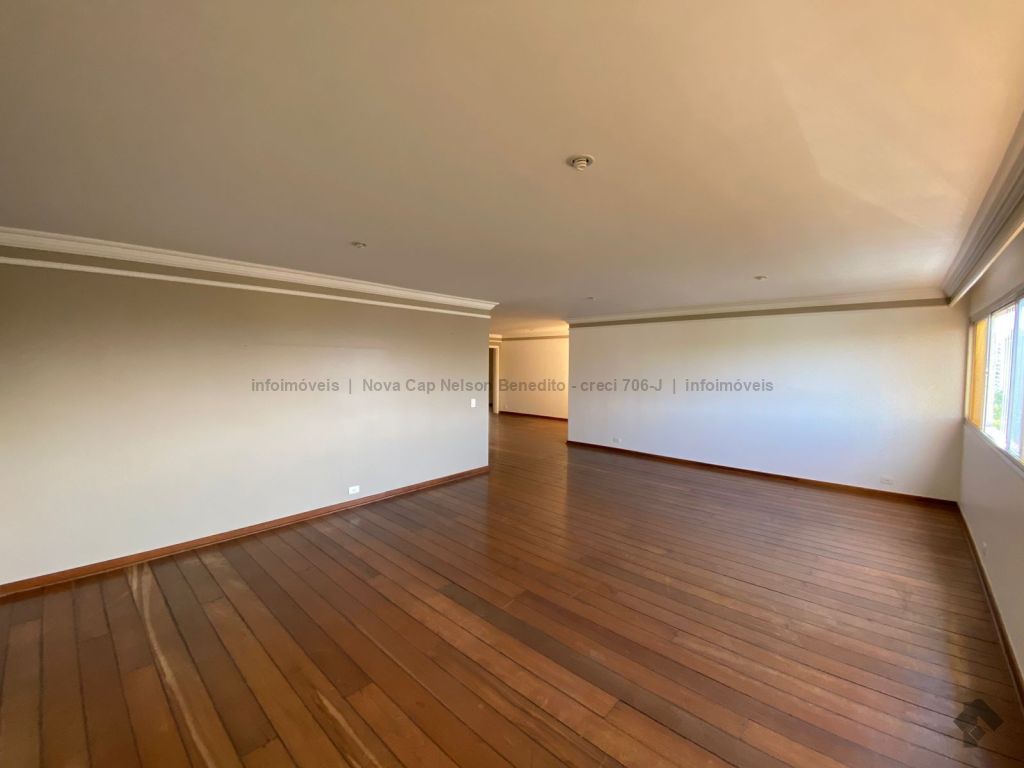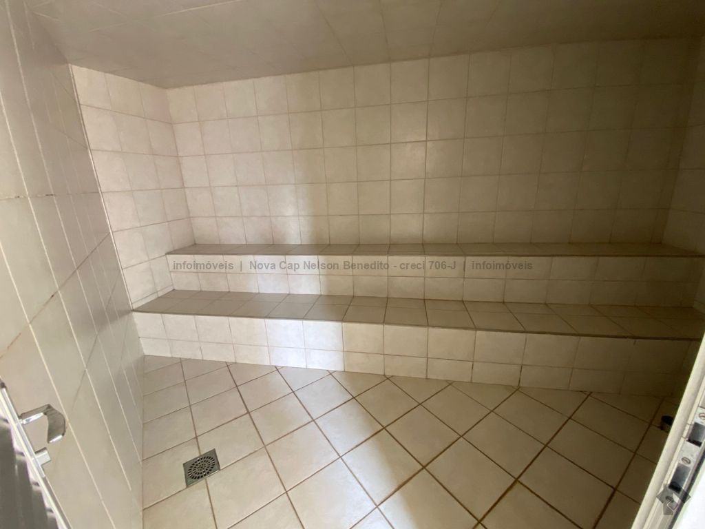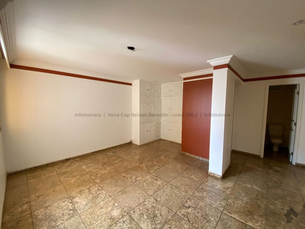 Sala para dois ambientes, lavabo, sala de TV, quatro suítes com armário e ar condicionado, sendo uma com closet, cozinha com armário, área de serviço com armário, quarto e banheiro de serviço com armário. Duas vagas de garagem. Condomínio com área gourmet, sauna, churrasqueira, salão de festas e quadra poliesportiva.