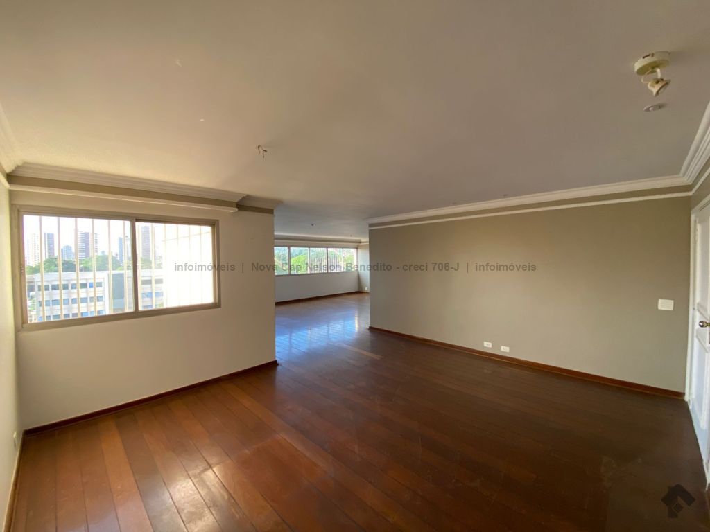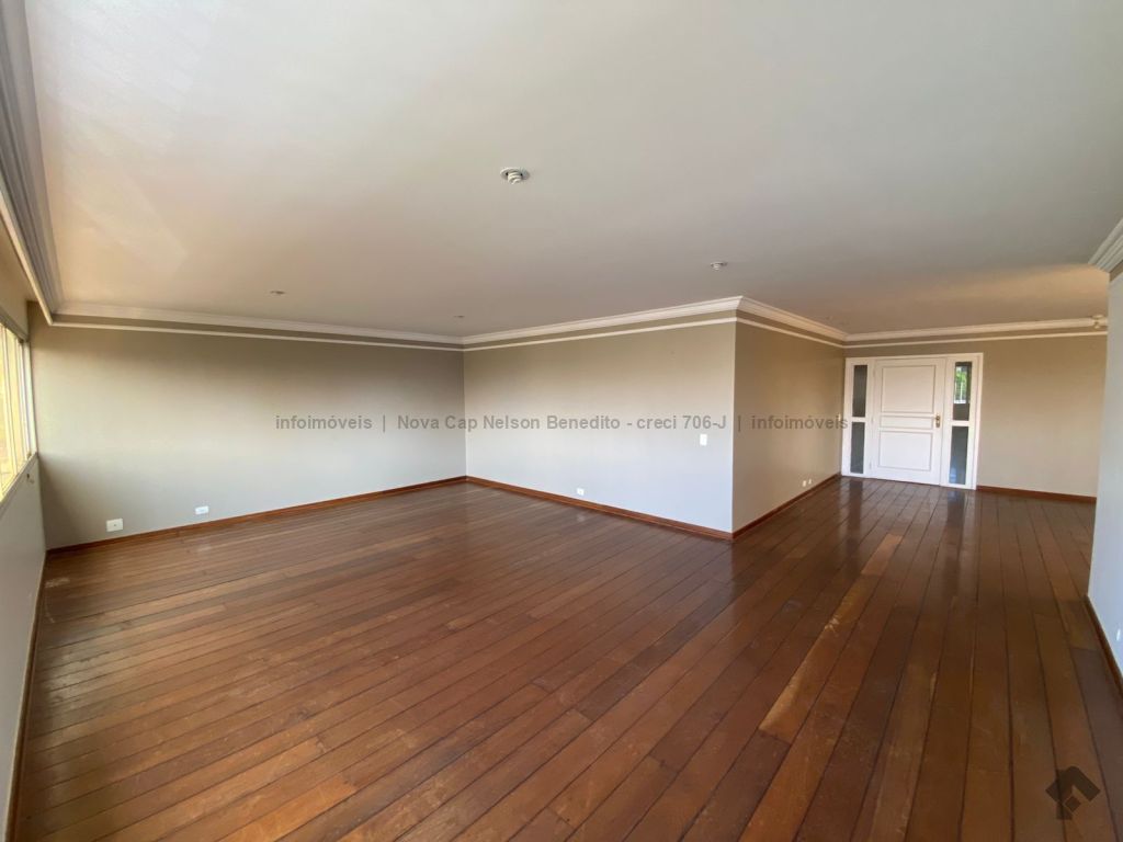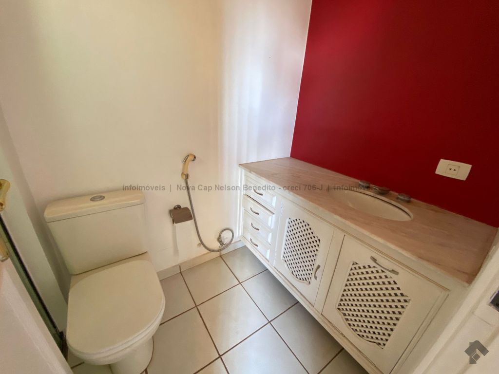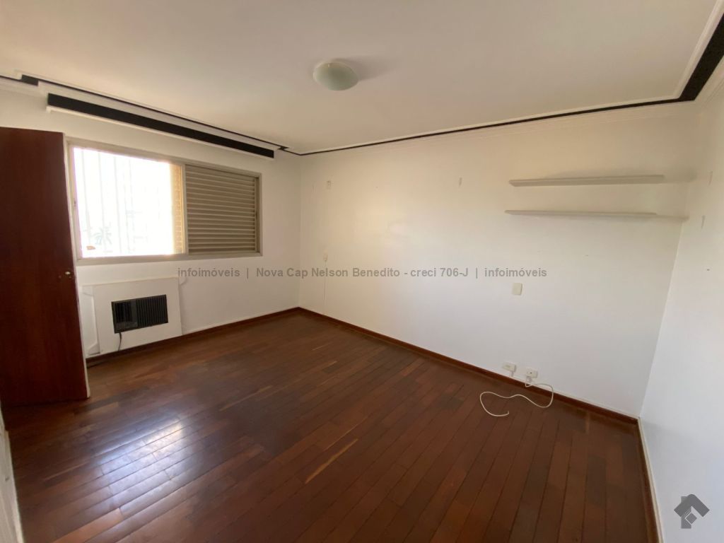 Sala para dois ambientes, lavabo, sala de TV, quatro suítes com armário e ar condicionado, sendo uma com closet, cozinha com armário, área de serviço com armário, quarto e banheiro de serviço com armário. Duas vagas de garagem. Condomínio com área gourmet, sauna, churrasqueira, salão de festas e quadra poliesportiva.