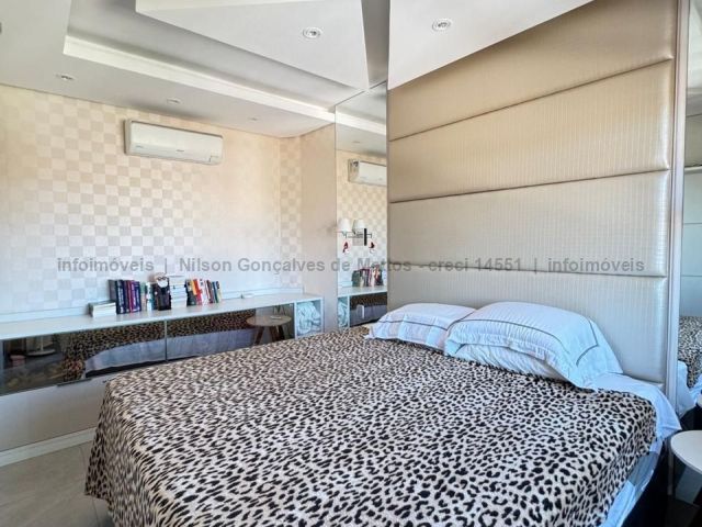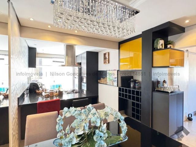 Belíssimo apartamento, todo decorado, com uma suíte master, closet e banheira de hidromassagem, sala de jantar e sala de TV, além de cozinha planejada, lavabo e banheiro social. Garagem coberta com vaga para um veículo, interfone, iluminação de LED e janelas antirruído, quatro aparelhos de ar condicionado inclusos, fogão cooktop e forno. São 153 m² de área construída e 180m² de área total.