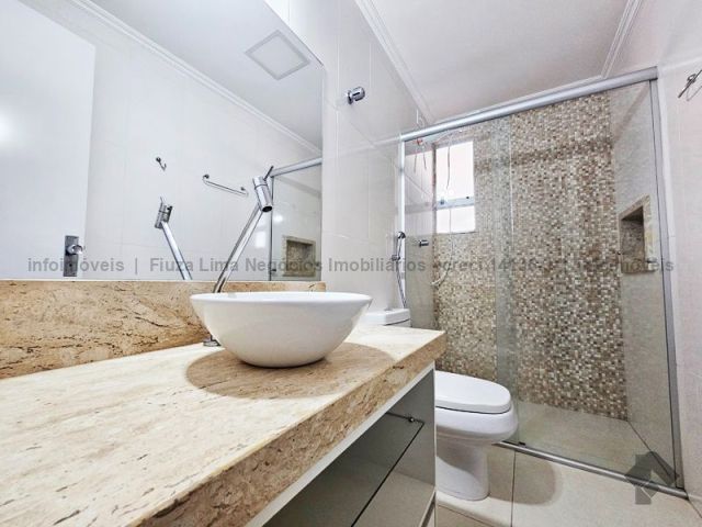 Apartamento de 90 m² todo mobiliado e equipado, pronto para morar. Com 3 dormitórios, sendo 1 suíte, banheiro social, cozinha, tudo com móveis planejados, área de serviço e sala com sacada para o nascente. Possui ainda 2 vagas de garagem no subsolo. O condomínio oferece salão de festas, quiosque com churrasqueira e piscinas adulto e infantil.