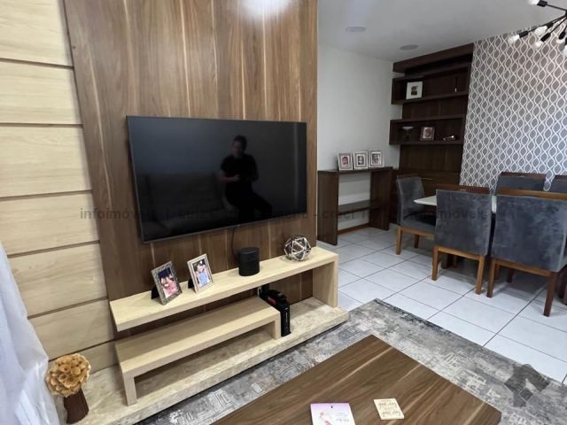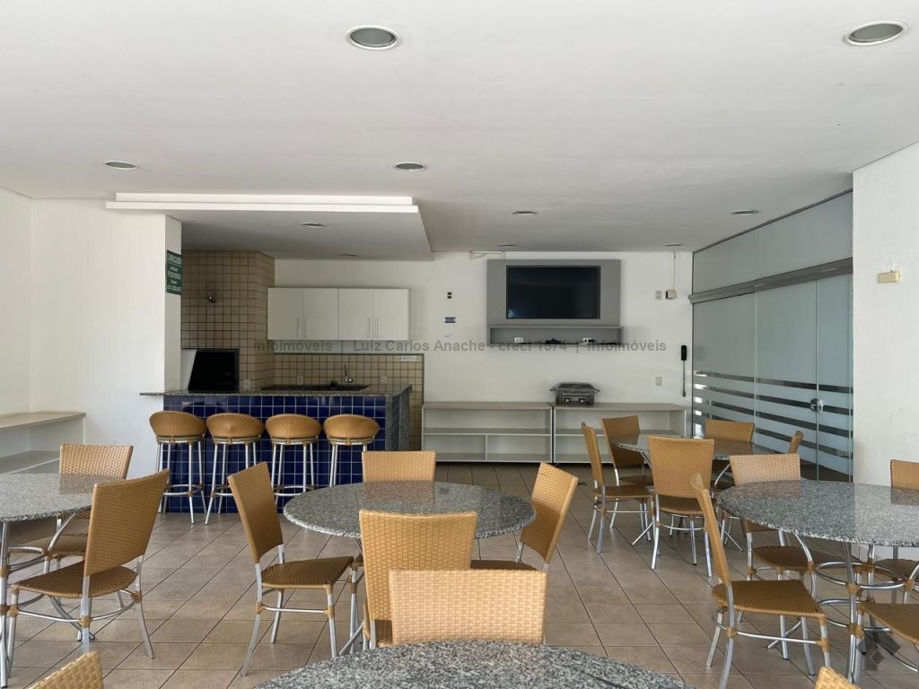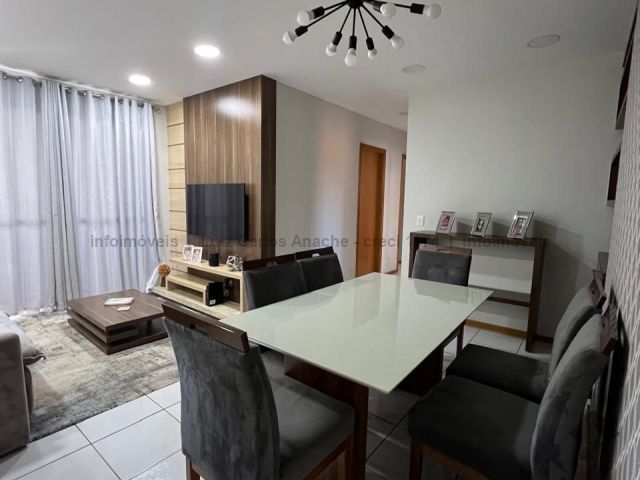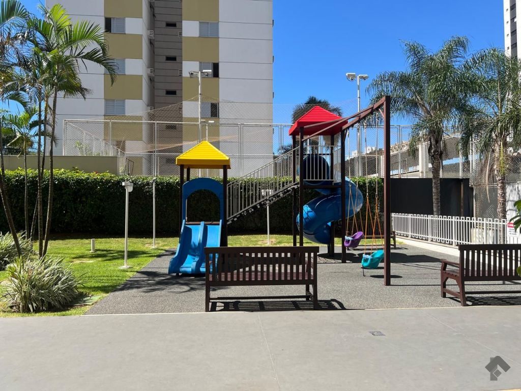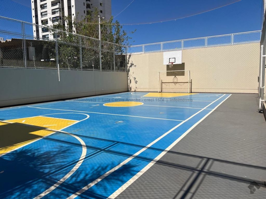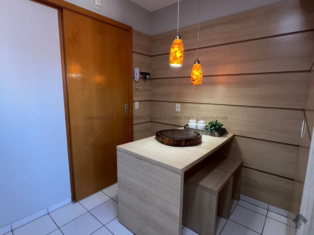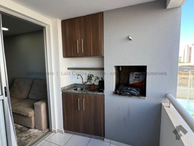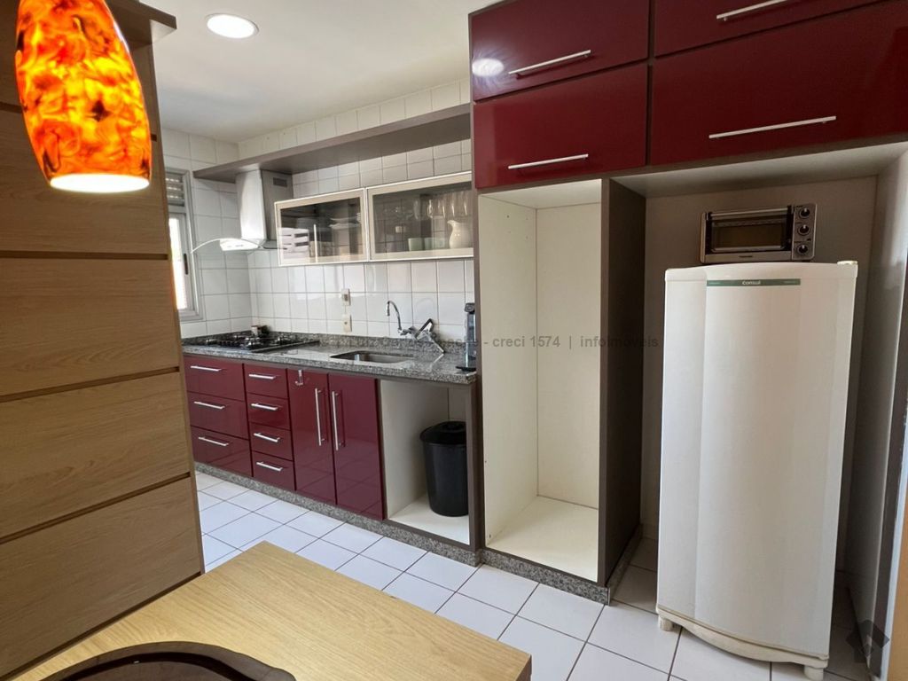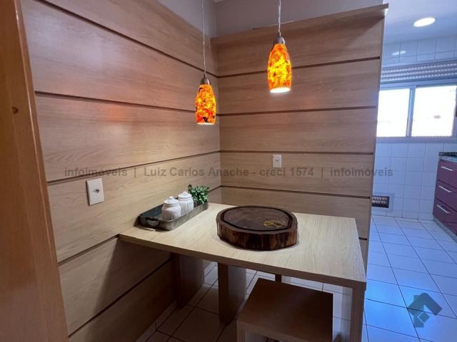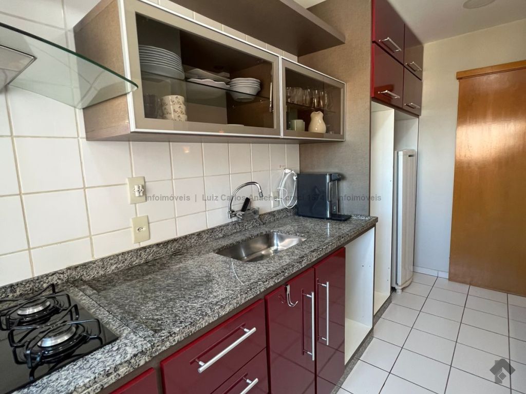 Dois quartos, sendo um com armário, banheiro social, lavabo, sala de dois ambientes, sacada com churrasqueira, cozinha planejada, área de serviço, 2 vagas de garagem.