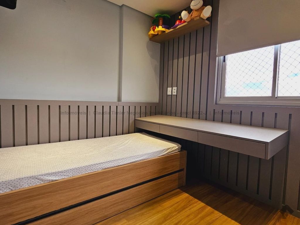 Apartamento no Garden Chácara Cachoeira com 2 vagas de garagem, sala para 2 ambientes, 01 suíte, 01 quarto com planejados, 01 escritório que pode ser revertido para quarto, sacada com churrasqueira, rico em planejados, 1 banheiro social. Condomínio com área de lazer, espaço do chef, lavandeira, academia, quadra poliesportiva, playground. Torre 1, nascente e vista para o parque. Geladeira, cooktop, máquina de lavar, televisão e mesa ficam no imóvel.