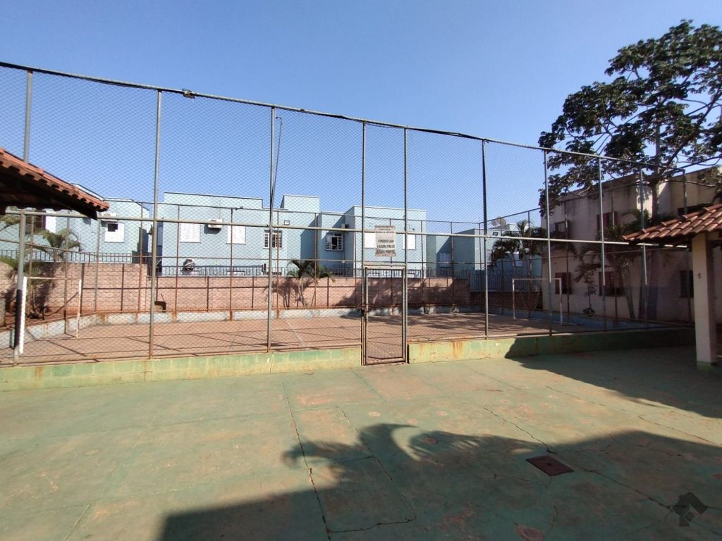 Apartamento no térreo, 1 suíte, 2 quartos, sala de estar, cozinha com armário embutido, área de serviço independente, 1 vaga de garagem, área de lazer com quadra fechada e dois quiosques com churrasqueiras e portaria eletrônica.