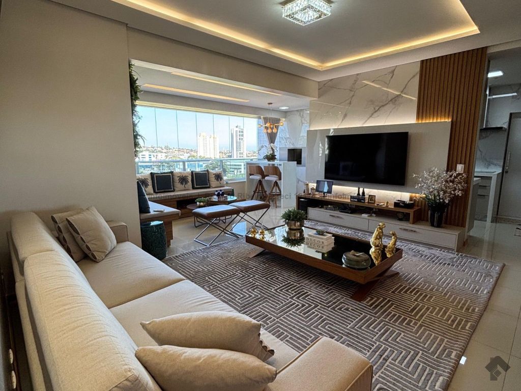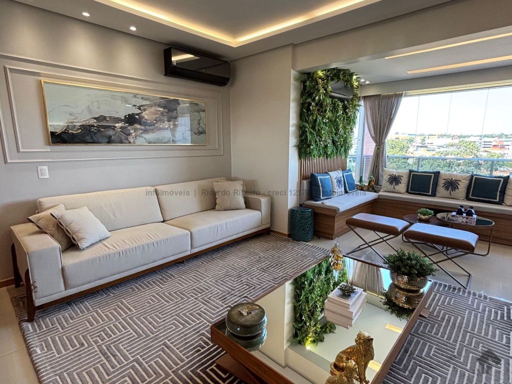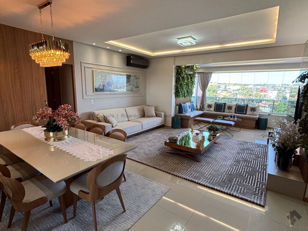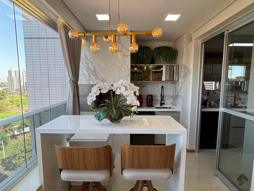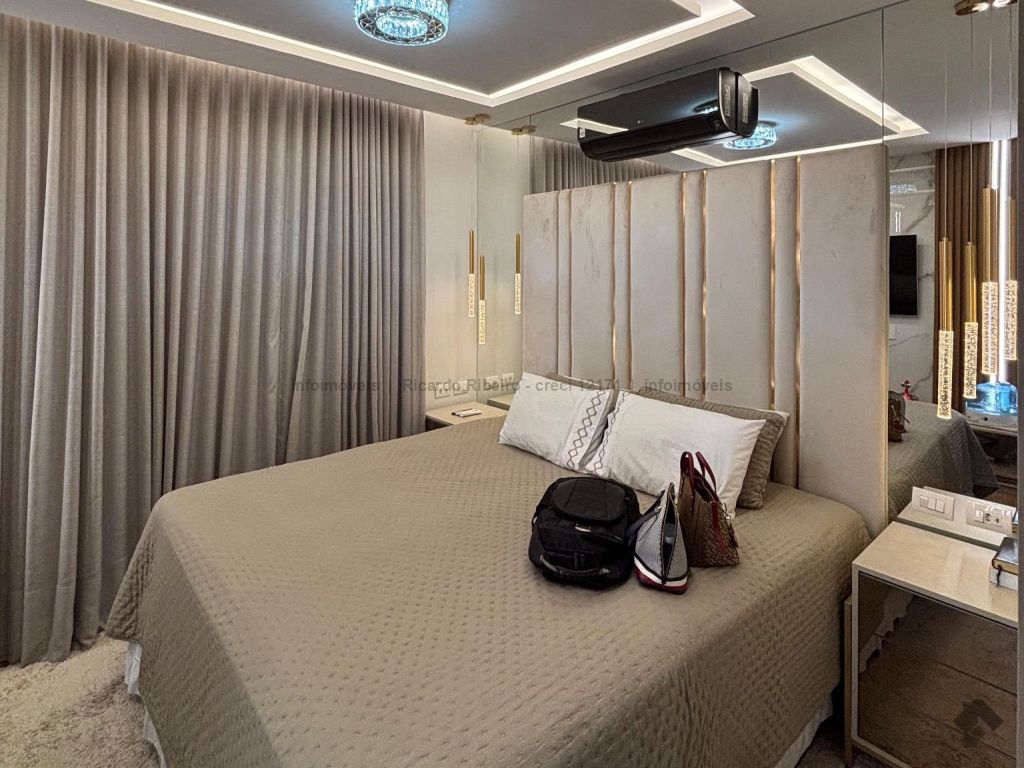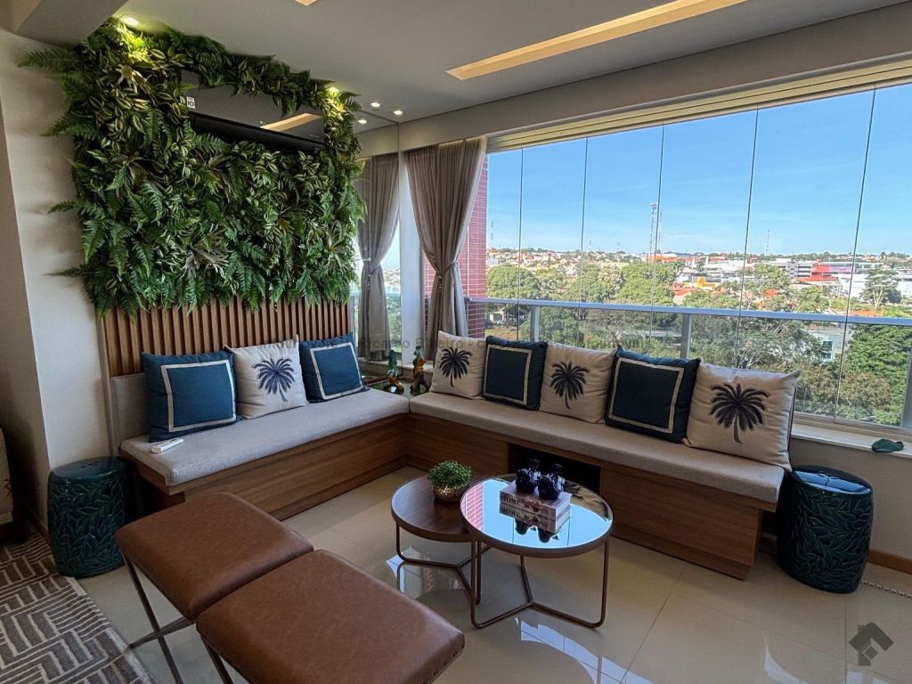 Apartamento riquíssimo em acabamento, iluminação, decoração, planejados Todeschini, piso porcelanato, revestimento em mármore branco. Ficam no apartamento todos os ares-condicionados, cortinas, lustres, forno elétrico, micro-ondas, fogão de indução e coifa. Próximo ao shopping Campo Grande.