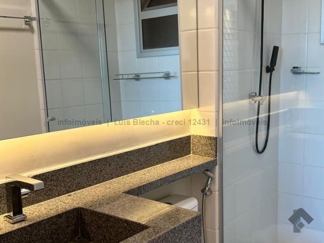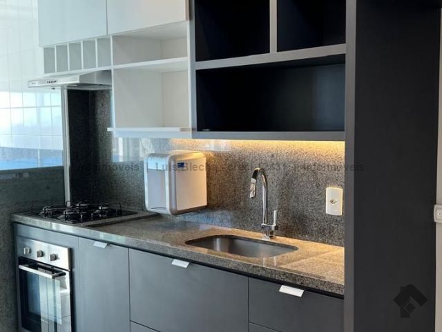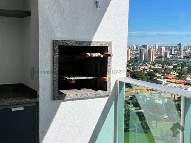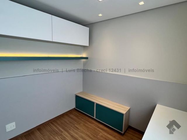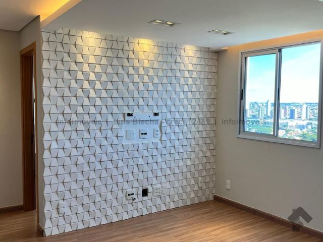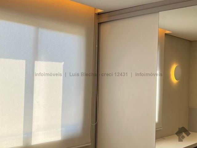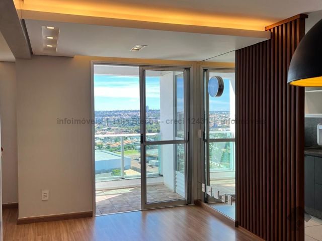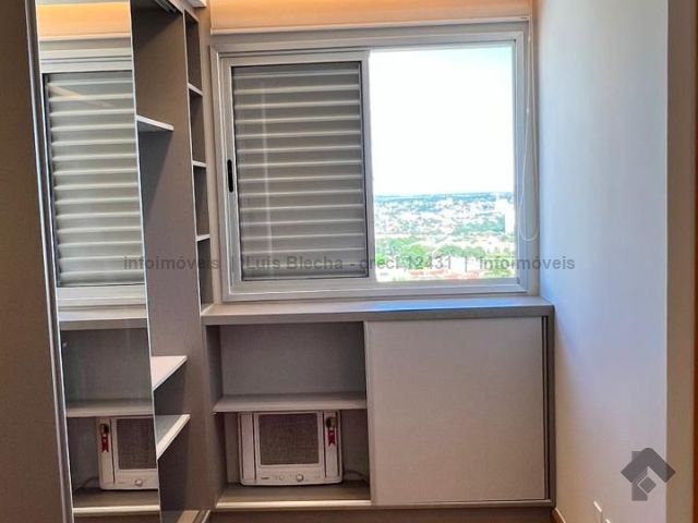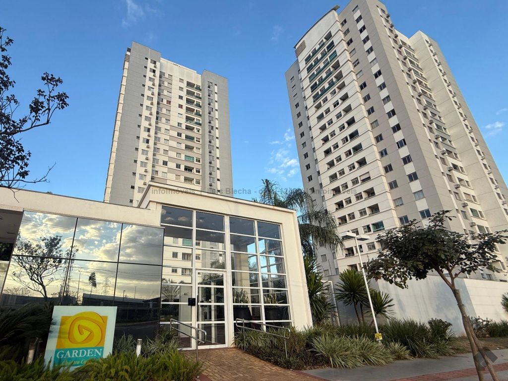 Lindo apartamento, super fresco, vista do pôr do sol, uma suíte com armários embutidos e persiana, um quarto com armários embutidos e persiana, dois banheiros com armários, chuveiros e box de vidro, sala de estar e jantar, cozinha com armários planejados, forno elétrico e fogão cooktop, área de serviço com armário e varal interno, varanda com armário e churrasqueira, ar condicionado em um quarto, duas vagas de garagem bem localizadas, apartamento de 75 m² no 19º andar do condomínio Garden Chácara Cachoeira.