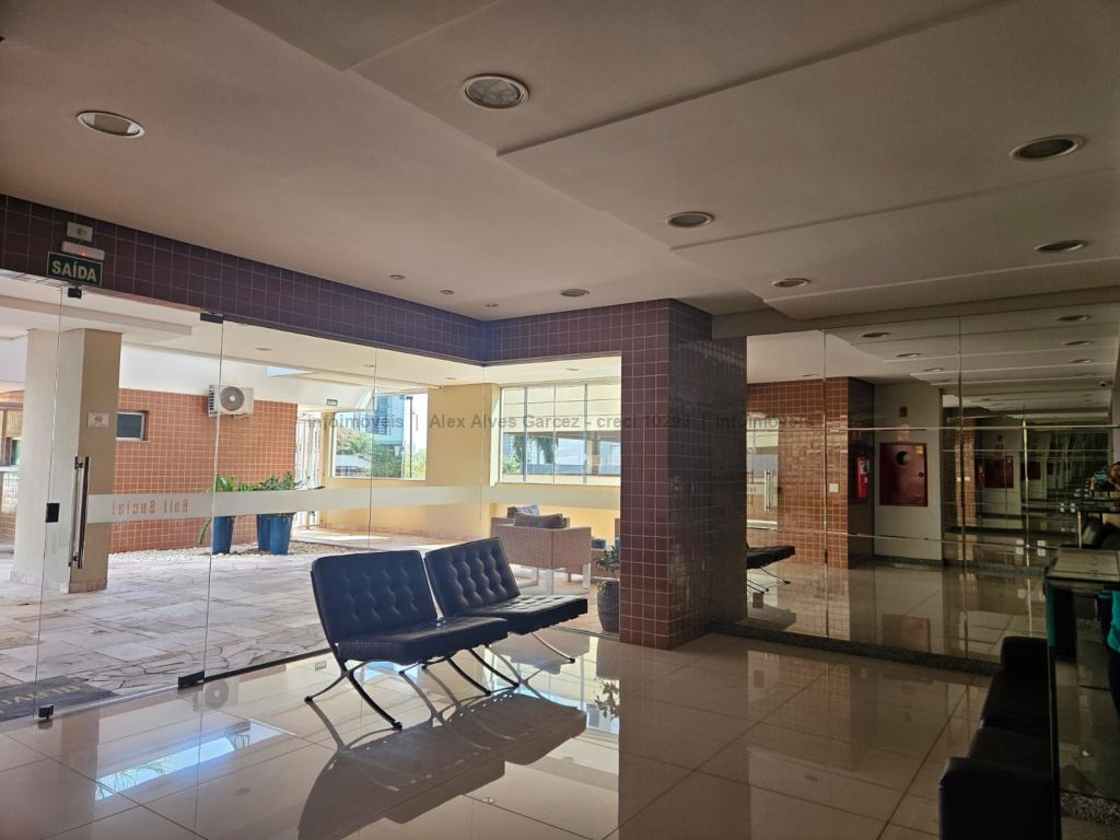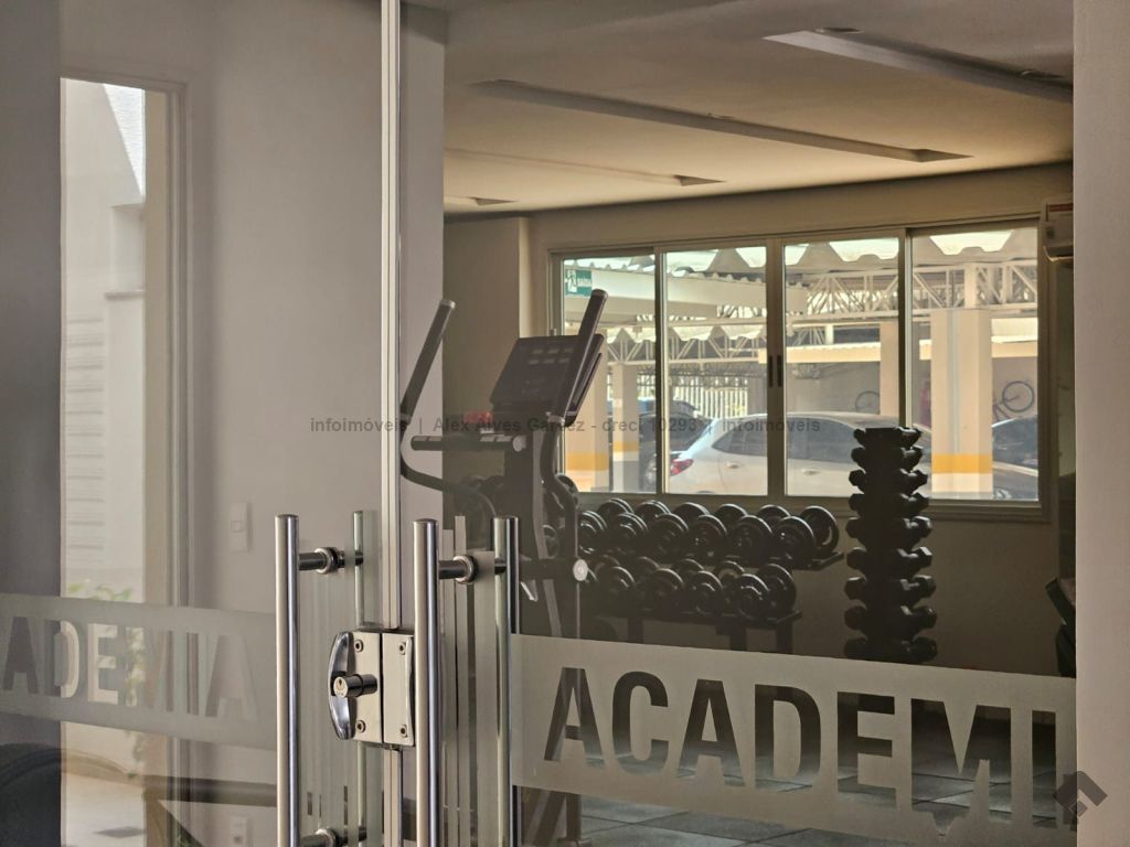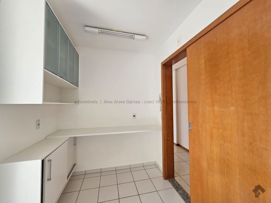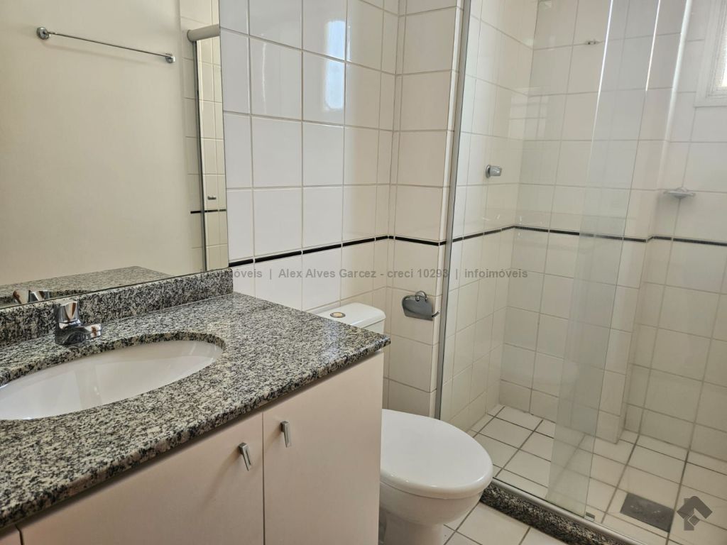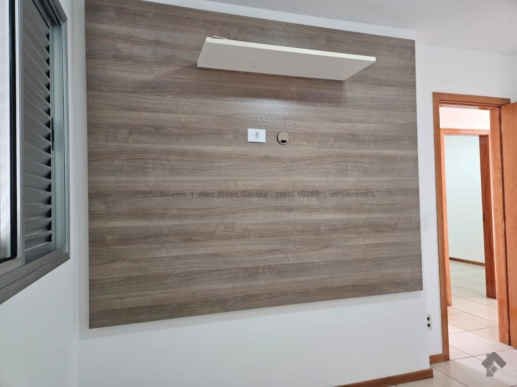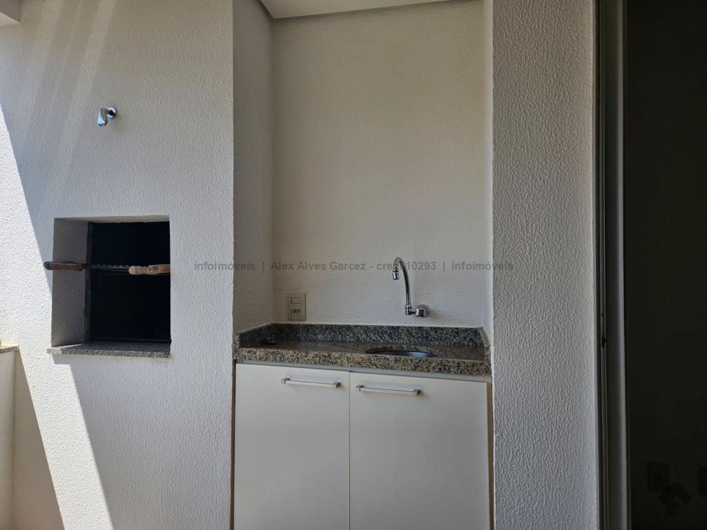 Um quarto com armários planejados, um quarto social sem armários, uma suíte com sacada e armários planejados, sala de dois ambientes, sacada e churrasqueira, lavabo, cozinha com armários, área de serviço e duas vagas de garagem.