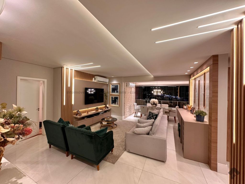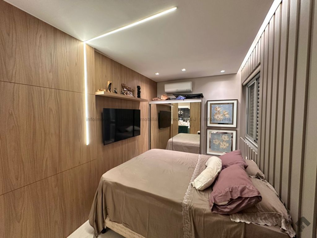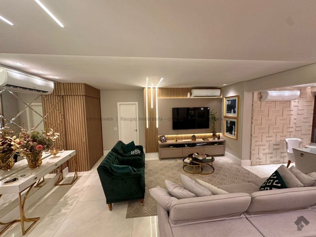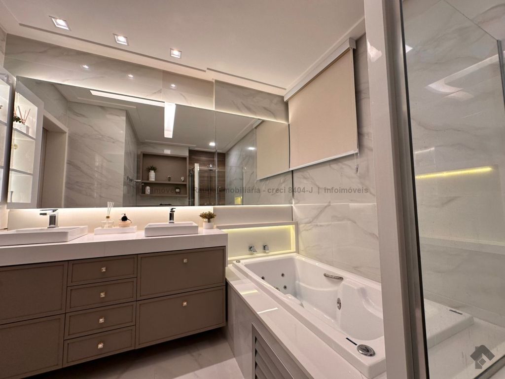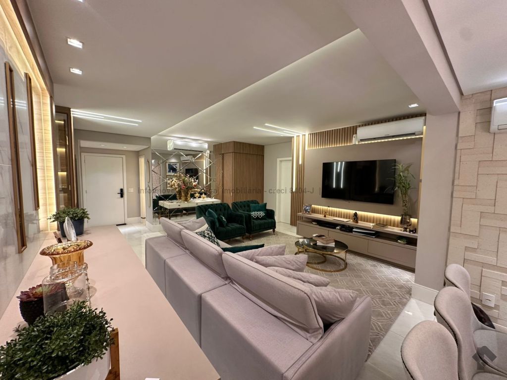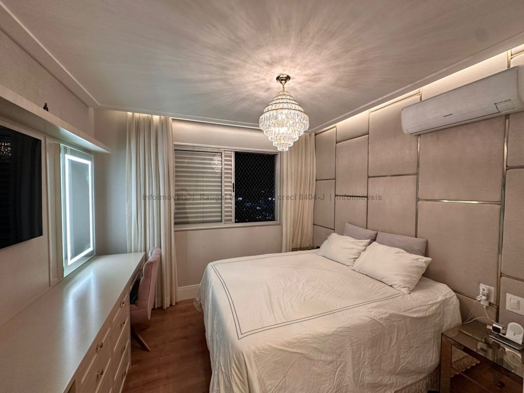 Apartamento mobiliado de alto padrão de conforto com 3 suítes, sendo uma master com banheira de hidromassagem, completo de móveis planejados, todos os ambientes climatizados, sacada gourmet com churrasqueira e reiki. O condomínio possui área de lazer completa, 3 vagas de garagem, sendo 1 vaga individualizada.