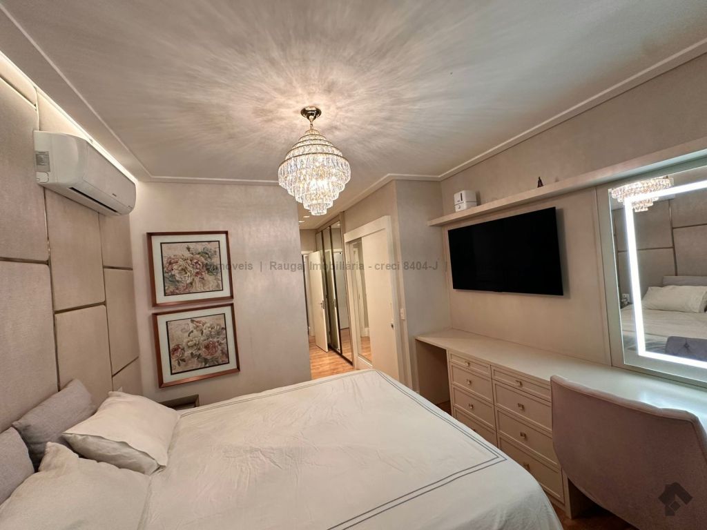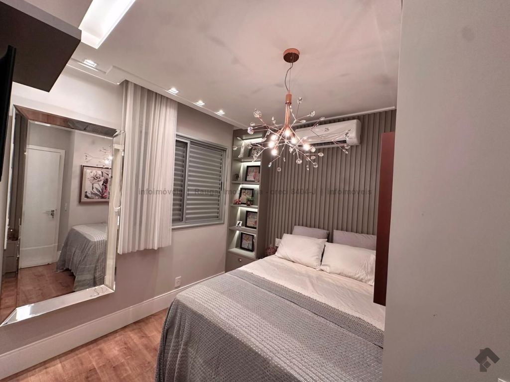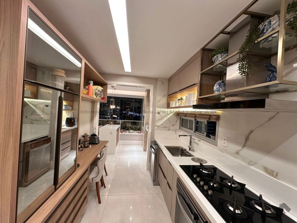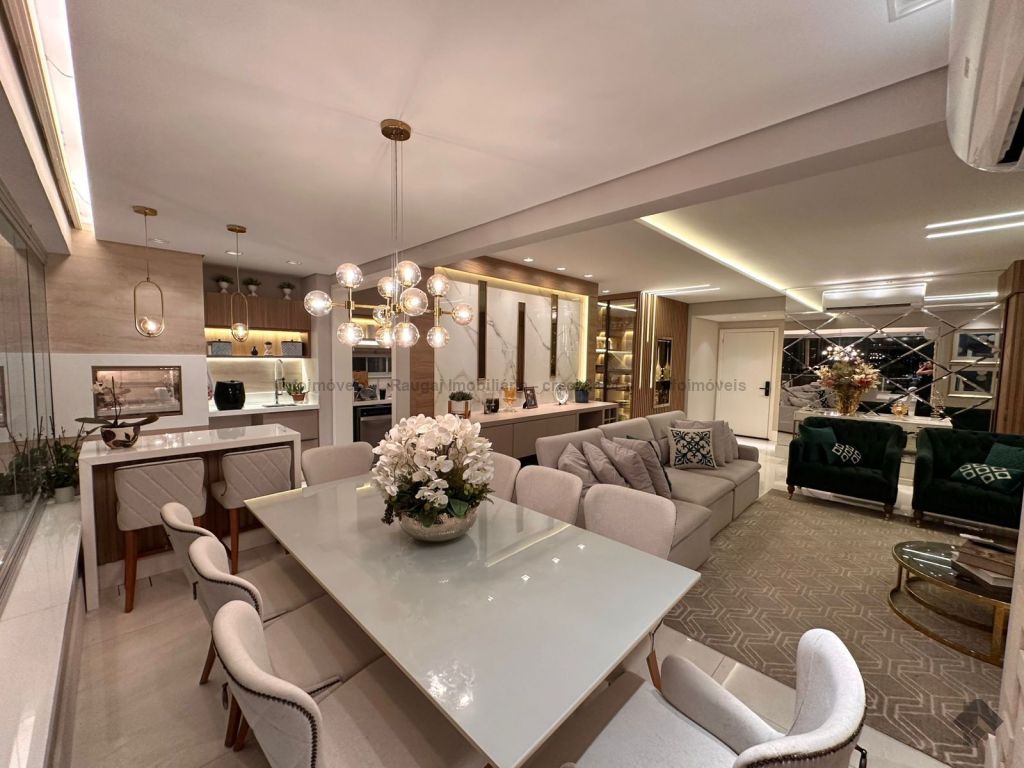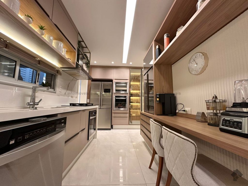 Apartamento mobiliado de alto padrão de conforto com 3 suítes, sendo uma master com banheira de hidromassagem, completo de móveis planejados, todos os ambientes climatizados, sacada gourmet com churrasqueira e reiki. O condomínio possui área de lazer completa, 3 vagas de garagem, sendo 1 vaga individualizada.