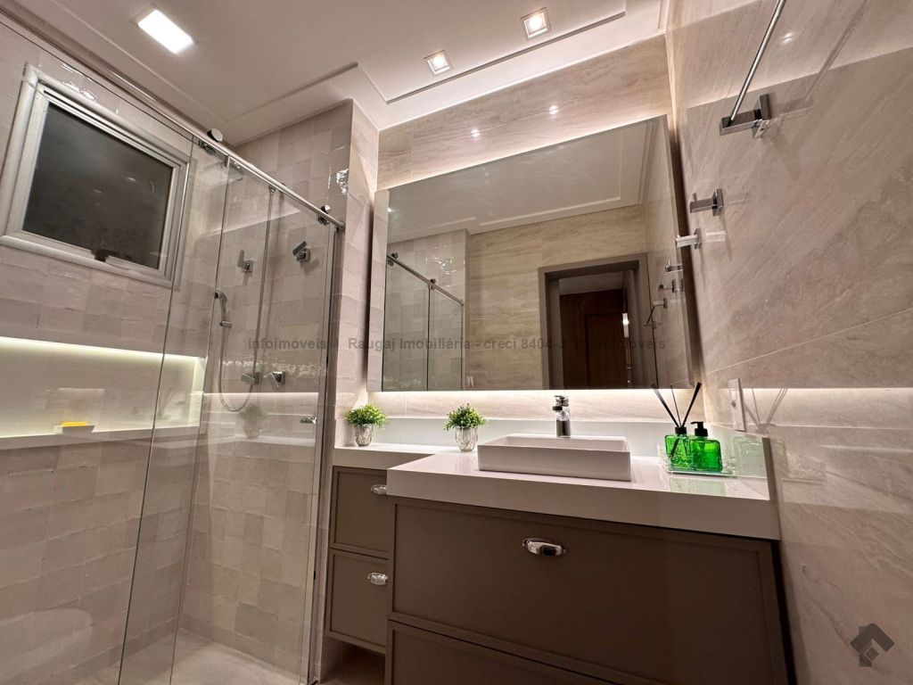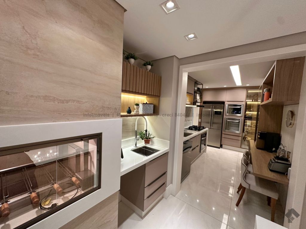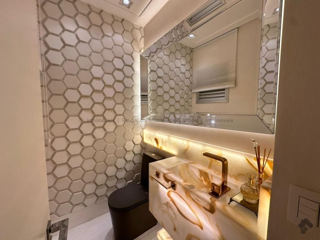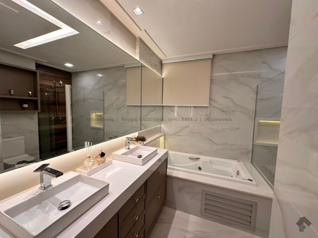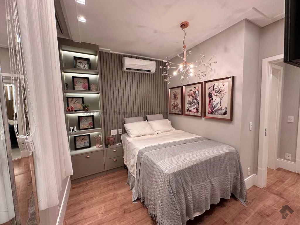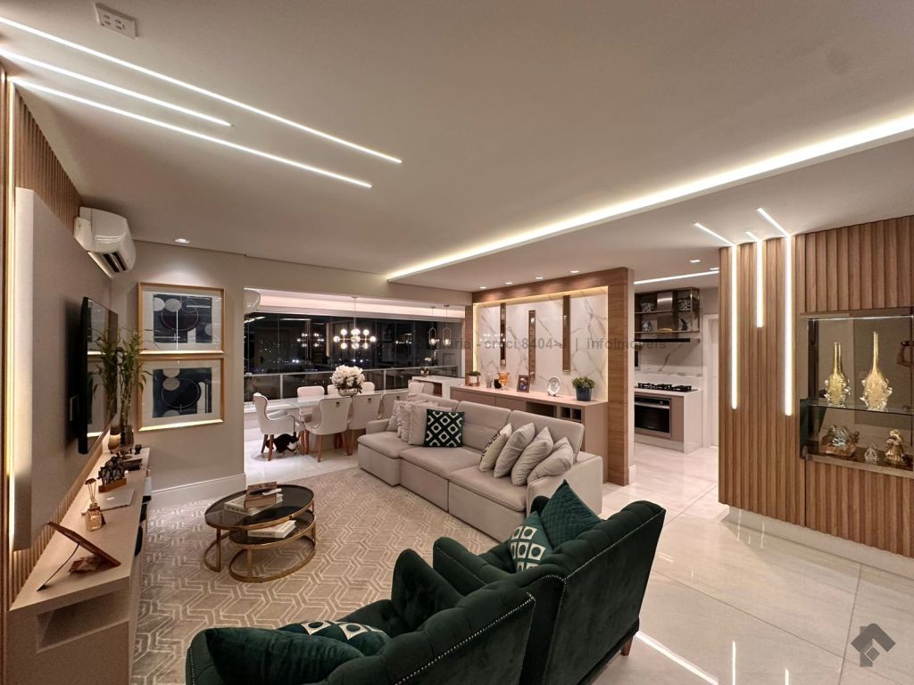 Apartamento mobiliado de alto padrão de conforto com 3 suítes, sendo uma master com banheira de hidromassagem, completo de móveis planejados, todos os ambientes climatizados, sacada gourmet com churrasqueira e reiki. O condomínio possui área de lazer completa, 3 vagas de garagem, sendo 1 vaga individualizada.