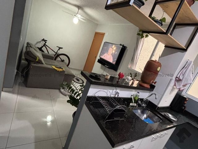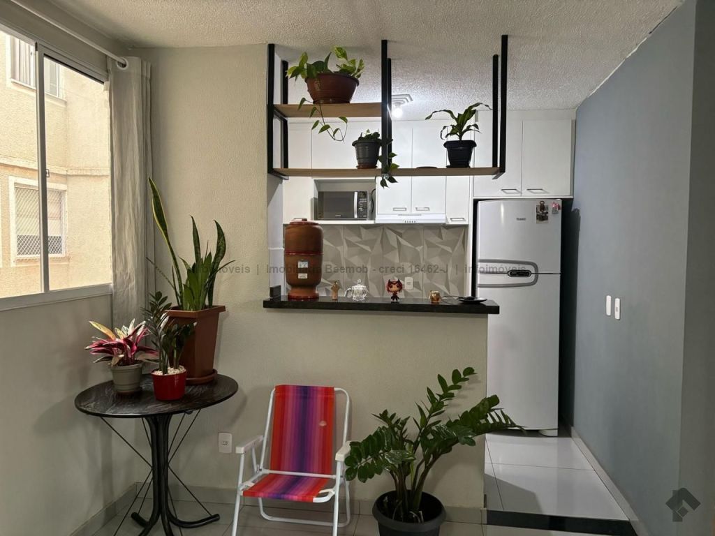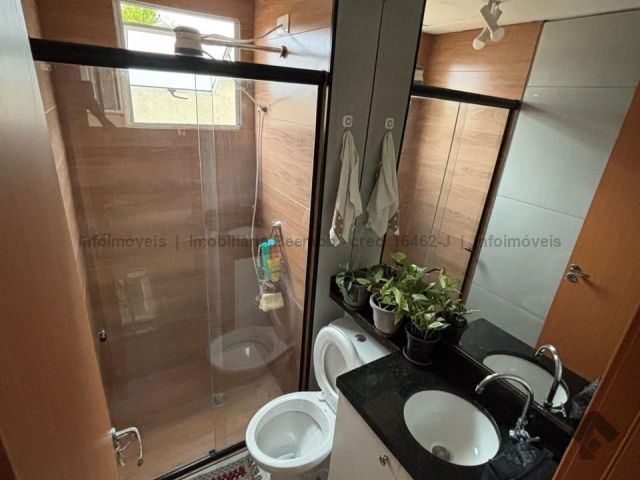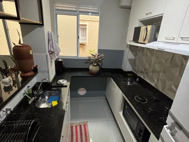 Apartamento com planejados no banheiro e na cozinha, porcelanato.