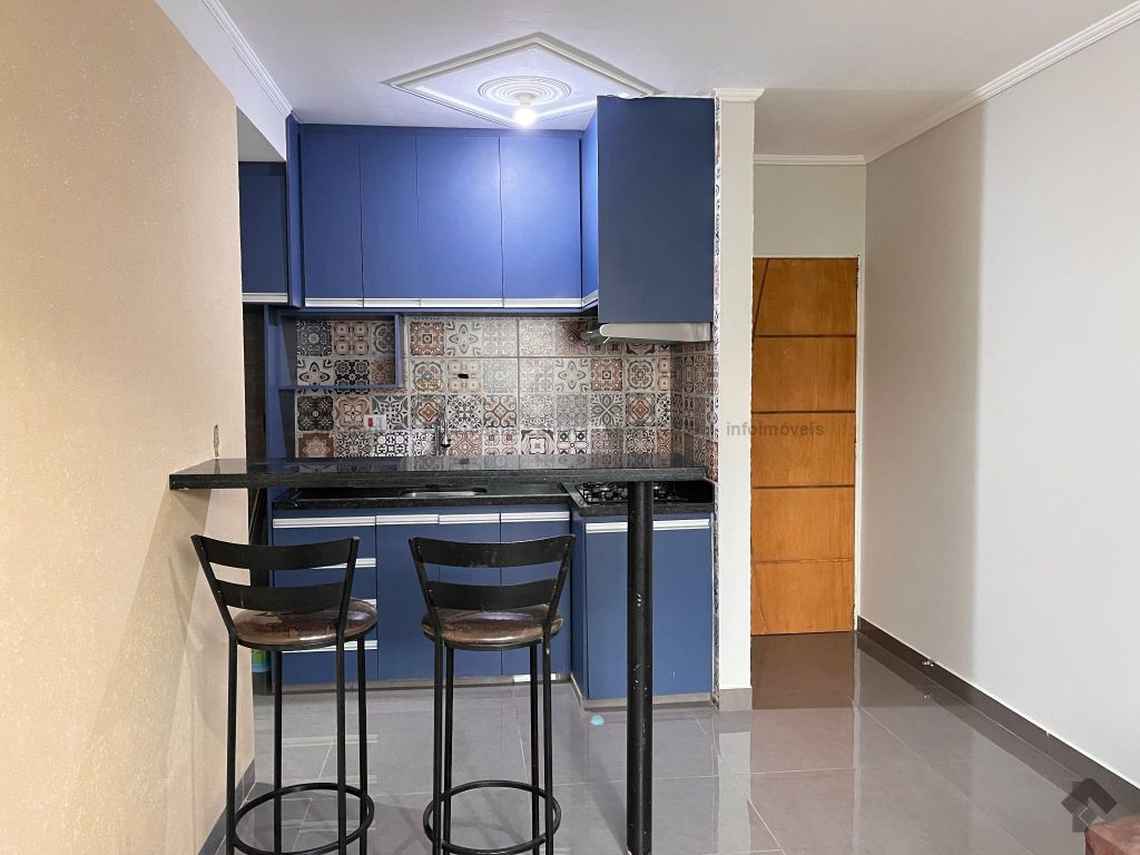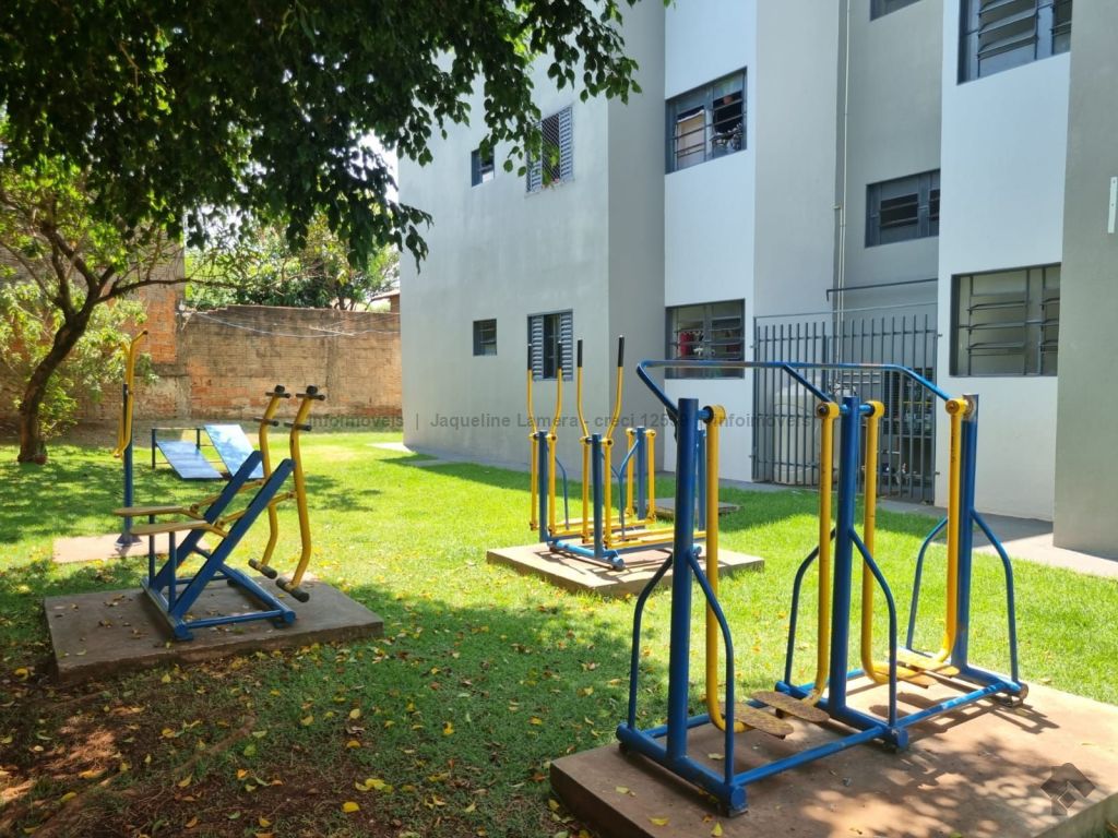 Apartamento no 1º andar, nascente, com dois quartos, cozinha com móveis planejados, área de serviço com planejados, banheiro em porcelanato, box em vidro temperado e uma vaga de garagem coberta. O condomínio dispõe de playground, academia ao ar livre, espaço coberto para lazer com churrasqueira, geladeira, fogão e micro-ondas.