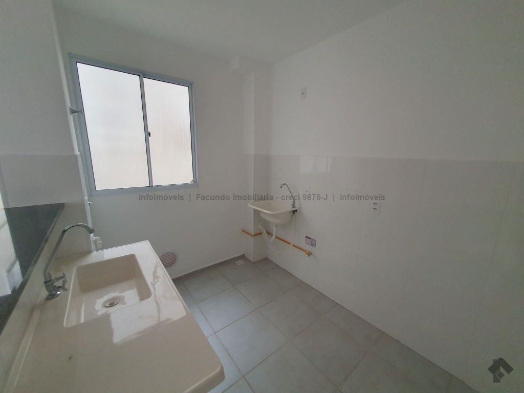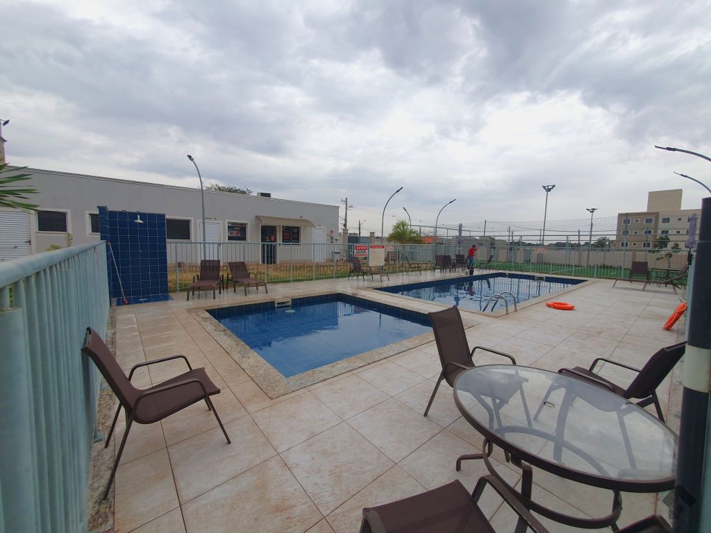 Apartamento térreo (garden), nascente e nunca habitado. Conta com 2 quartos, sala, cozinha americana, banheiro, área de serviço e 1 vaga de garagem não coberta. O condomínio dispõe de portaria remota, salão de festas, churrasqueira, quadra de futebol, piscina adulto e infantil, playground e mini mercado.