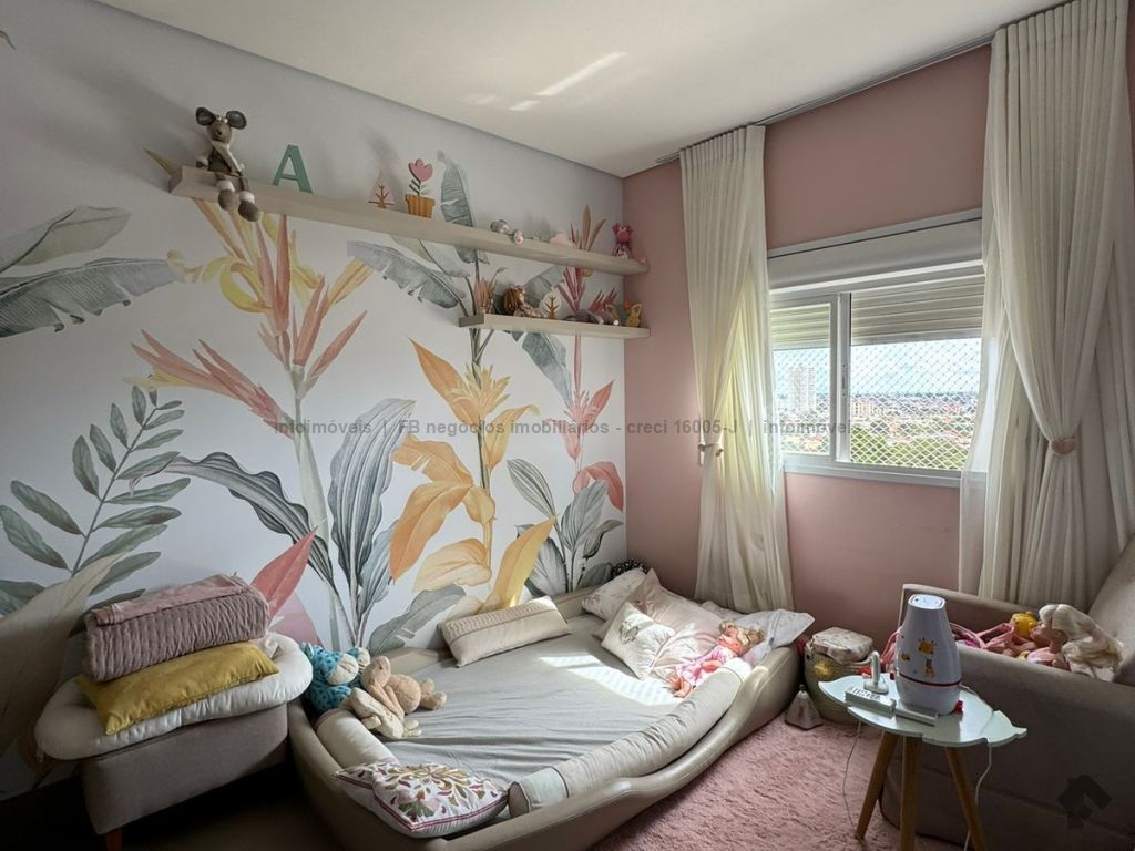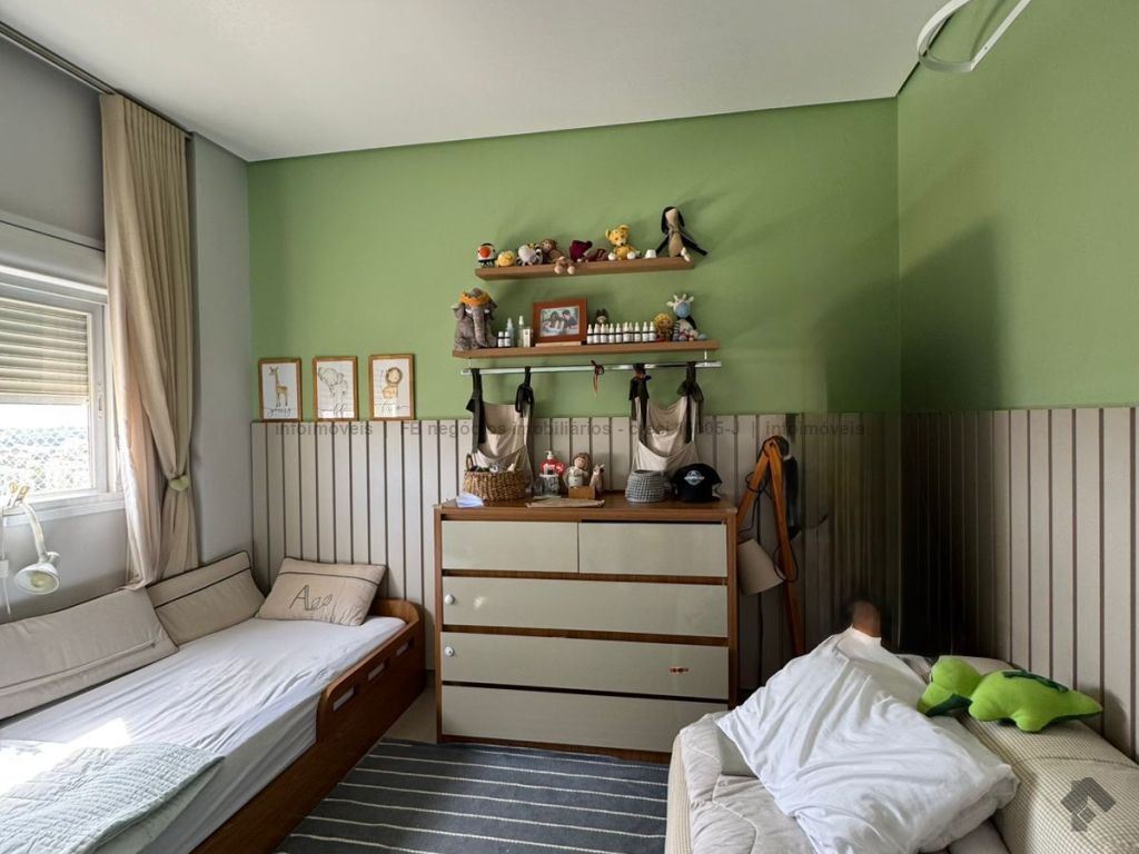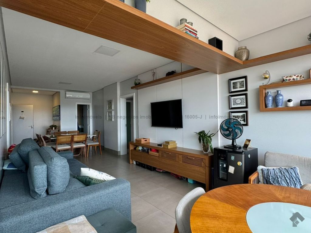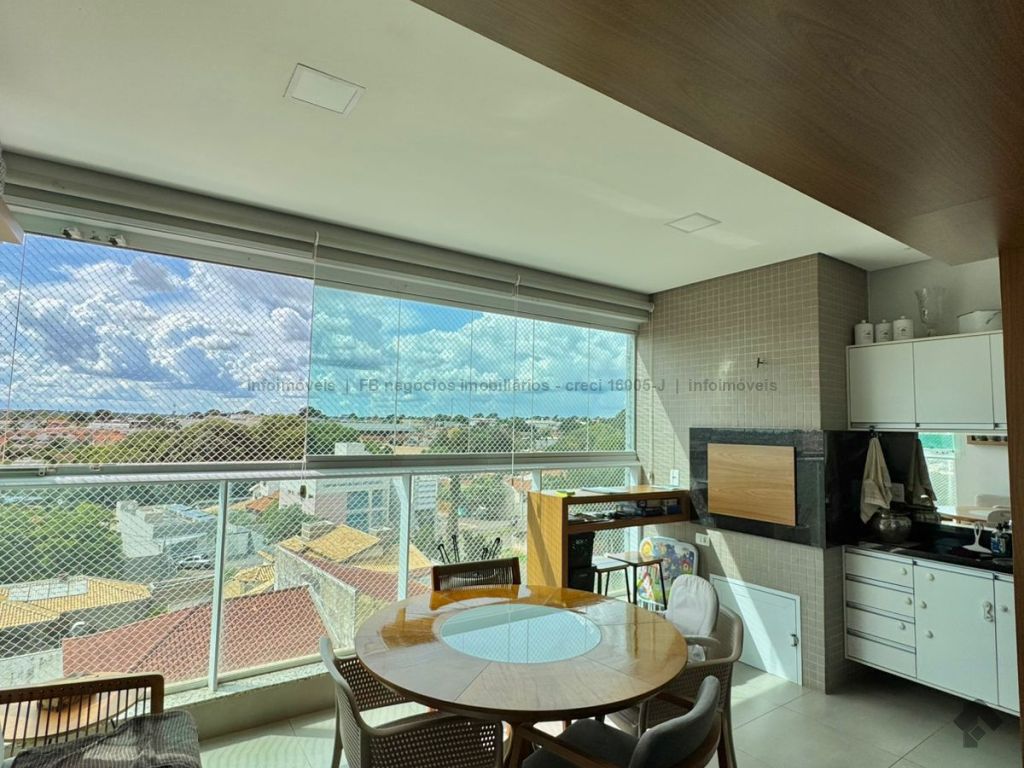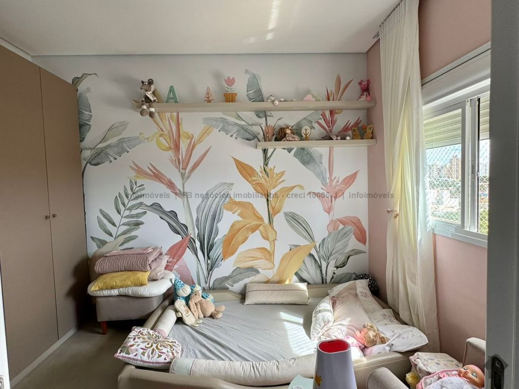 Apartamento possui sala de jantar, sala de TV, 1 suíte com ar-condicionado, 02 quartos demi suíte, sacada, 02 vagas de garagem, cozinha planejada, despensa, lavabo, área de serviço, WC de serviço, salão de festas, academia, brinquedoteca, quadra e piscina.