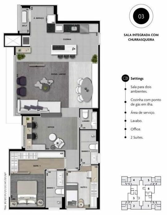 Um dos melhores apartamentos da torre Mondo, andar alto, 16º andar, nascente, 103 m², 3 quartos, sendo 1 suíte, sala com varanda integrada, depósito e 2 vagas de garagem bem localizadas. Área de lazer espetacular com mobiliário moderno e assinado por arquitetos renomados.