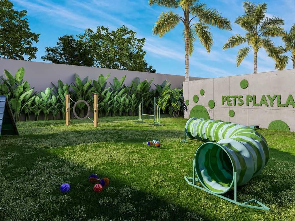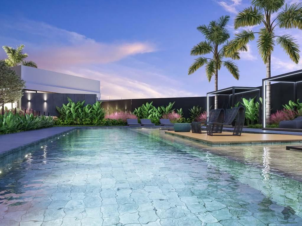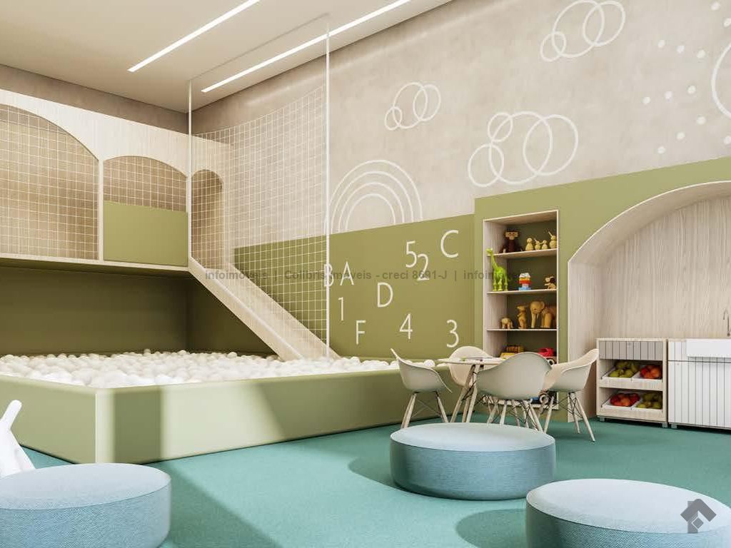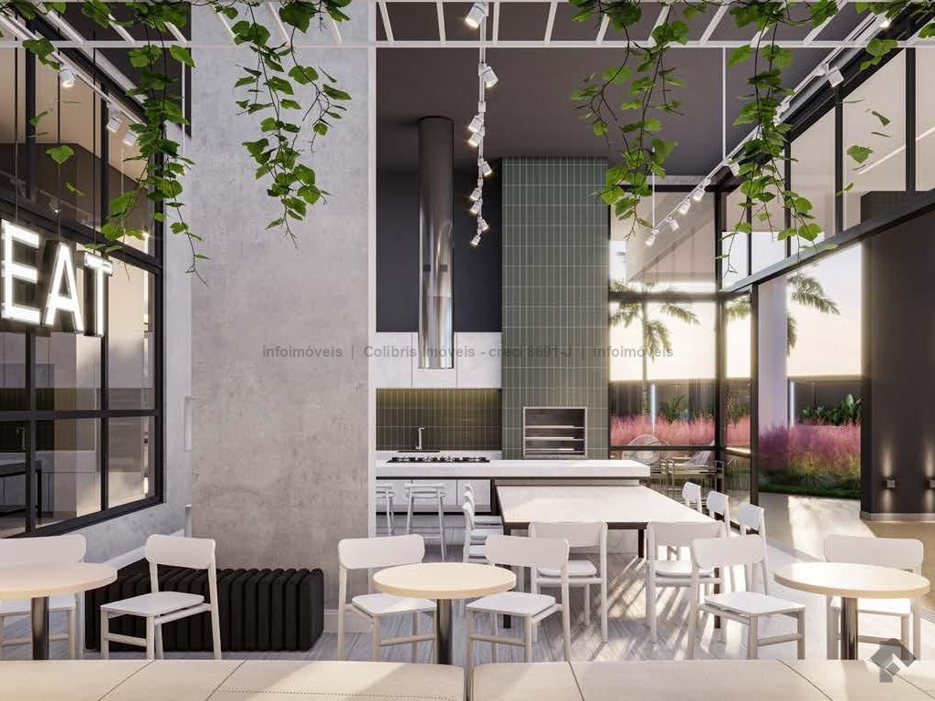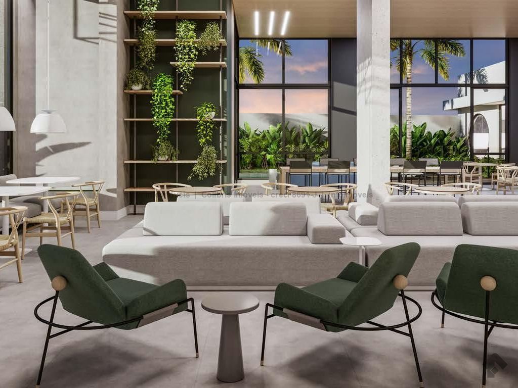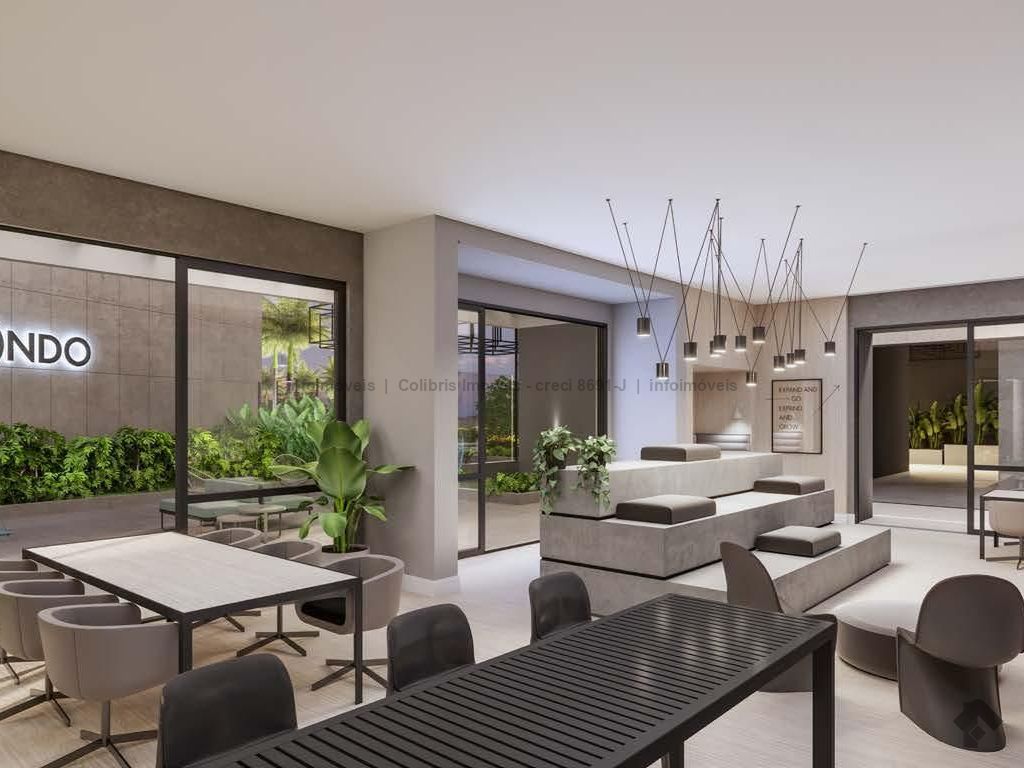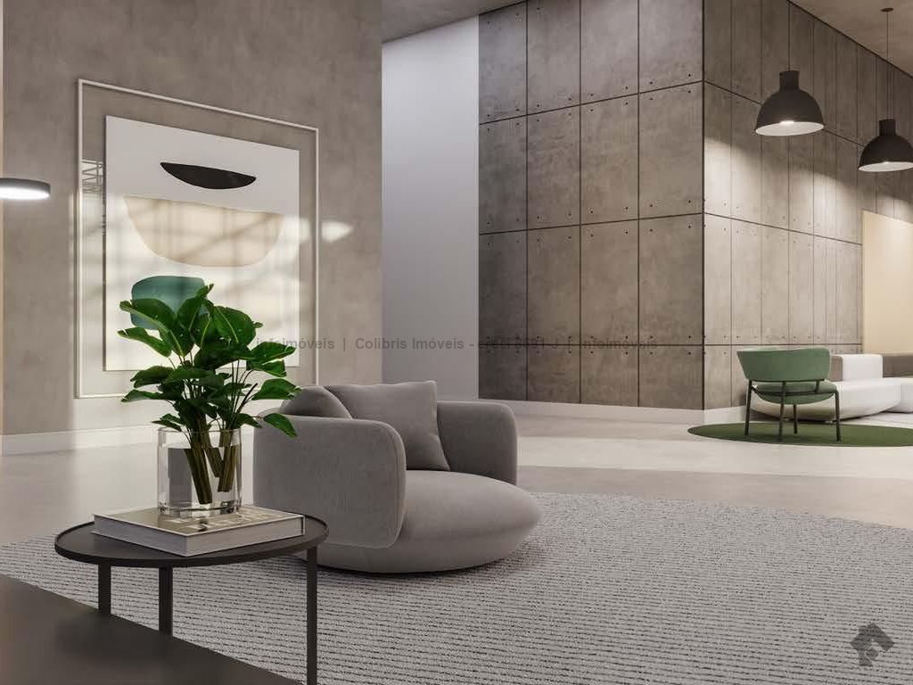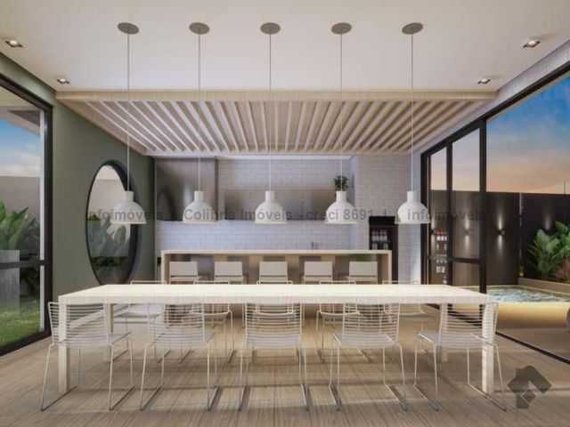 Sala ampliada para dois ambientes com churrasqueira integrada, cozinha, lavabo, uma suíte, dois quartos e duas vagas de garagem.