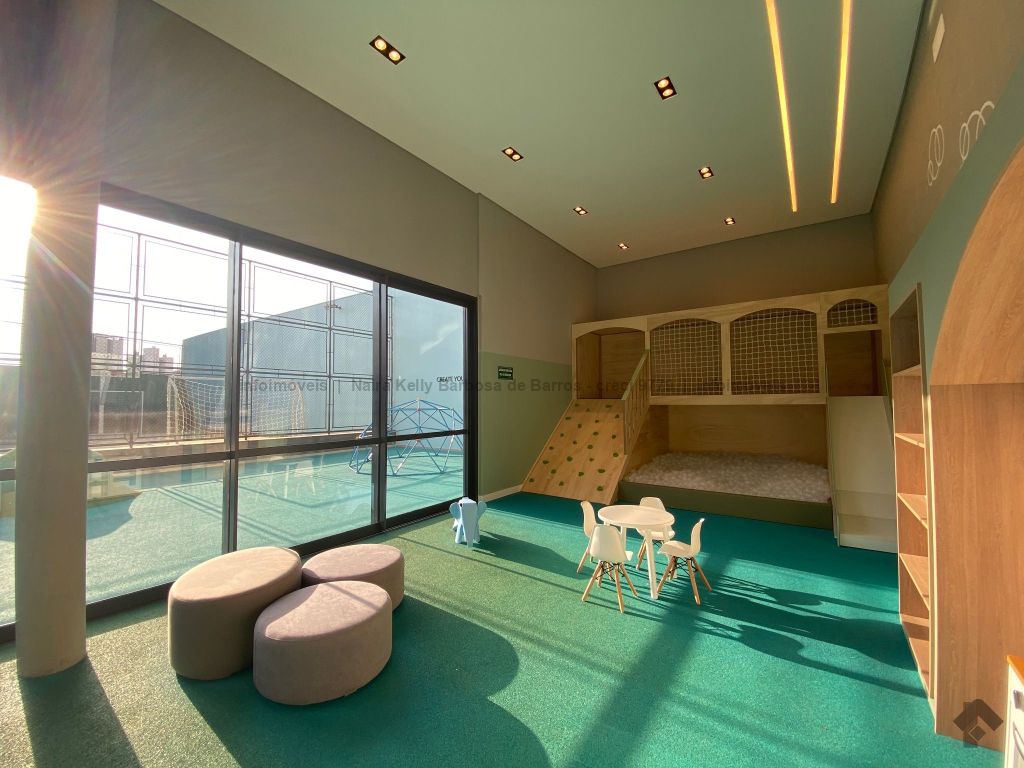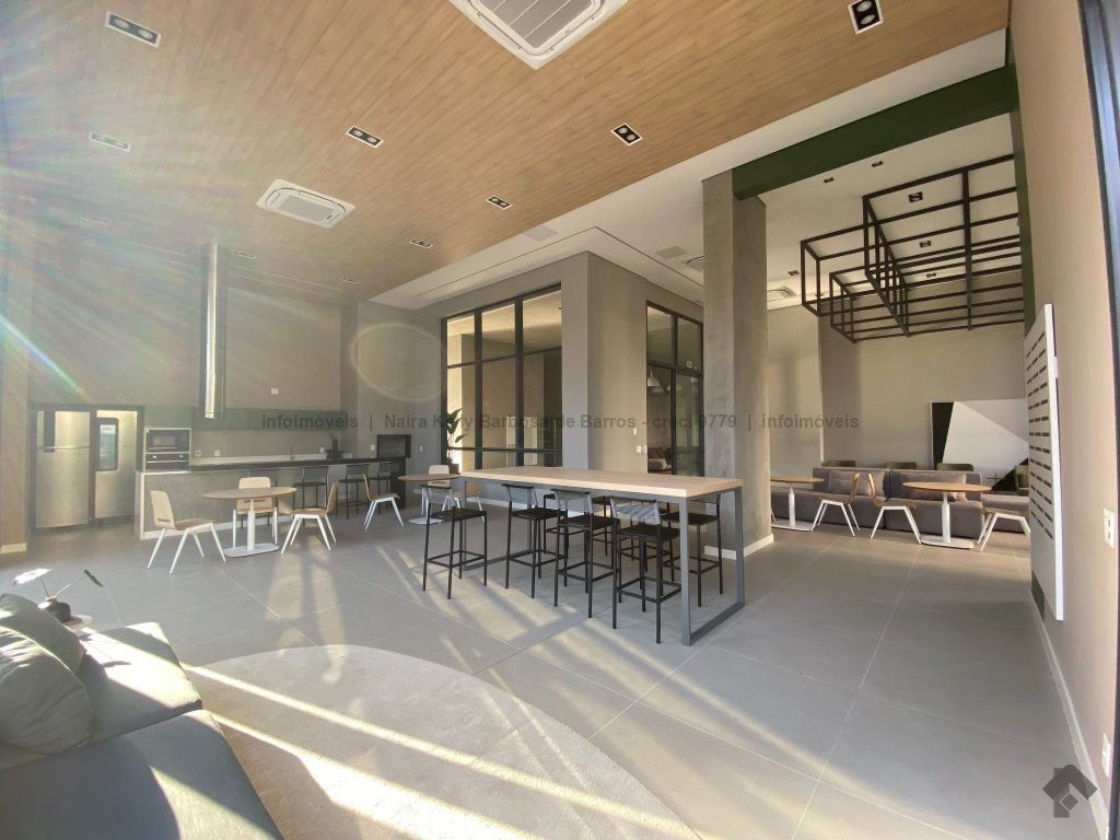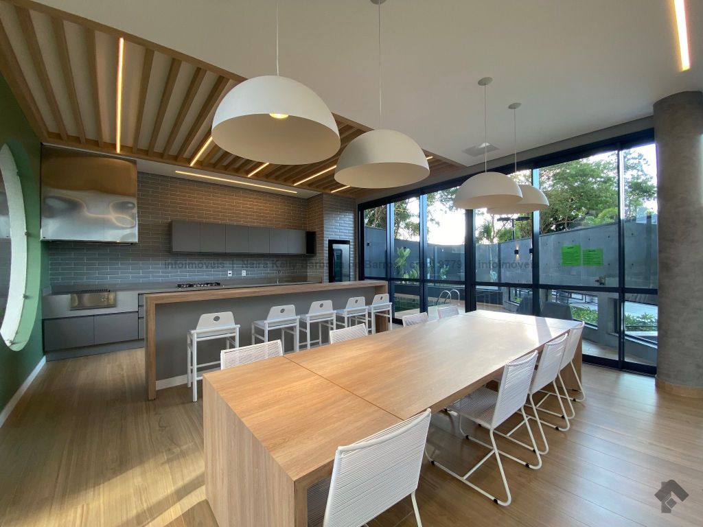 Ampla área de lazer com pet place. São três quartos, sendo uma suíte com pia dupla, lavabo, sala integrada com a cozinha, lavanderia ao lado, churrasqueira na sacada e duas vagas cobertas lado a lado.