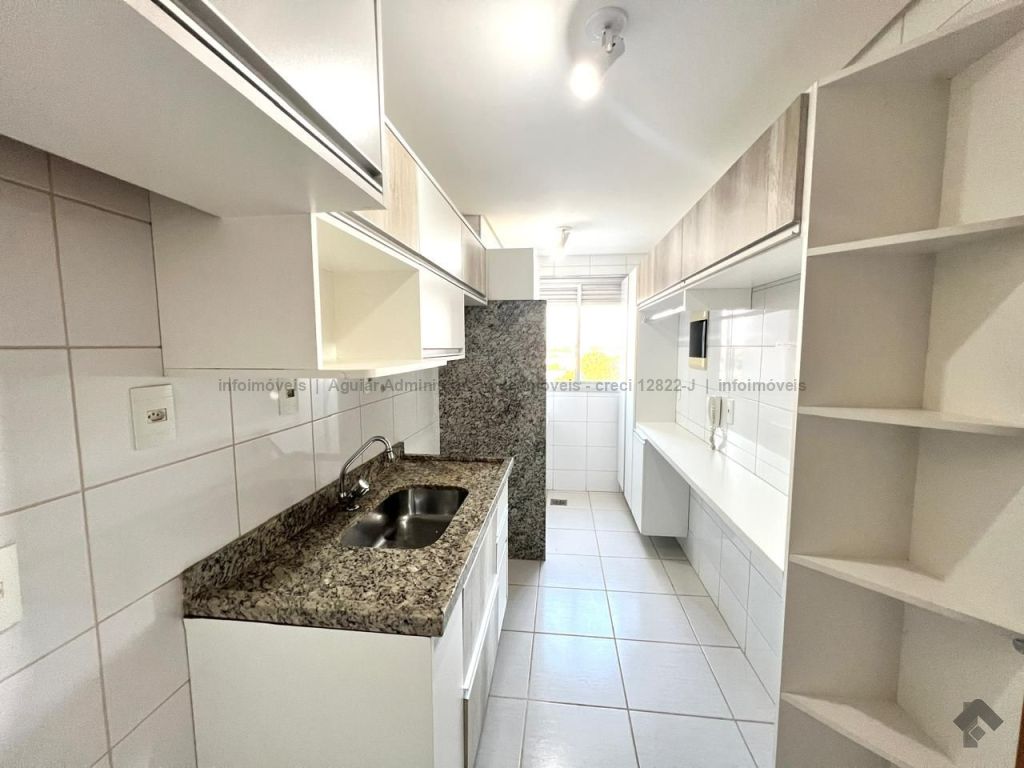 Apartamento com ventilação natural, confortável, bem conservado, rico em armários, sol da manhã. Dispõe de 02 quartos sendo 1 suíte, banheiro social, cozinha com armários, lavanderia, sala de estar/tv, sacada com churrasqueira. Vista para a cidade. Possui ainda uma vaga de garagem coberta. O condomínio possui portaria 24h, três salões de festas, quadra de futebol, playground, academia, piscinas e área gourmet com churrasqueira.