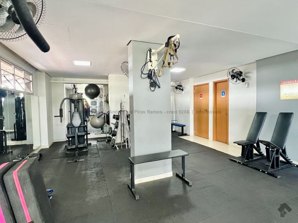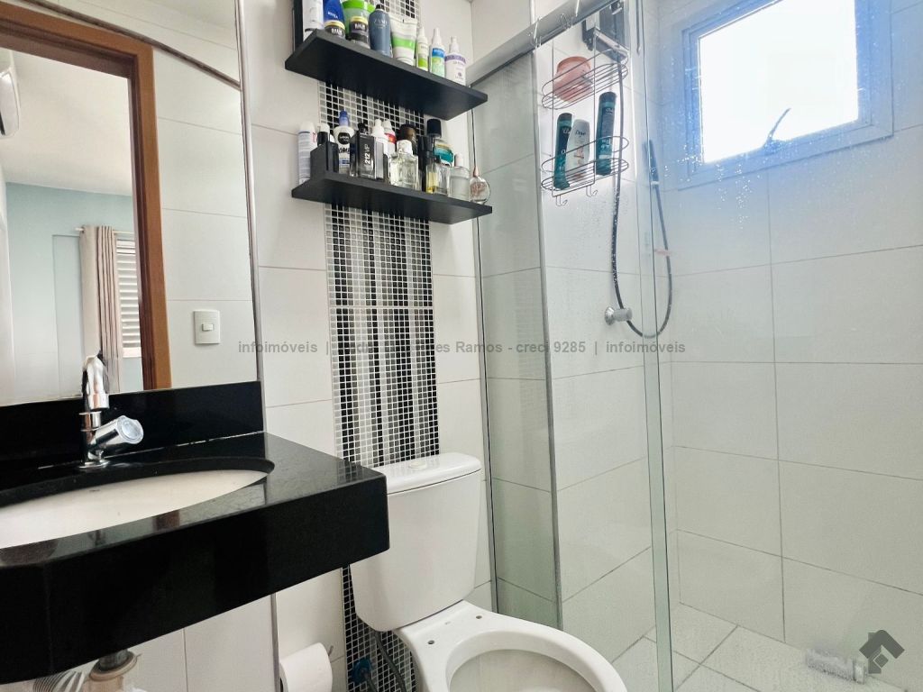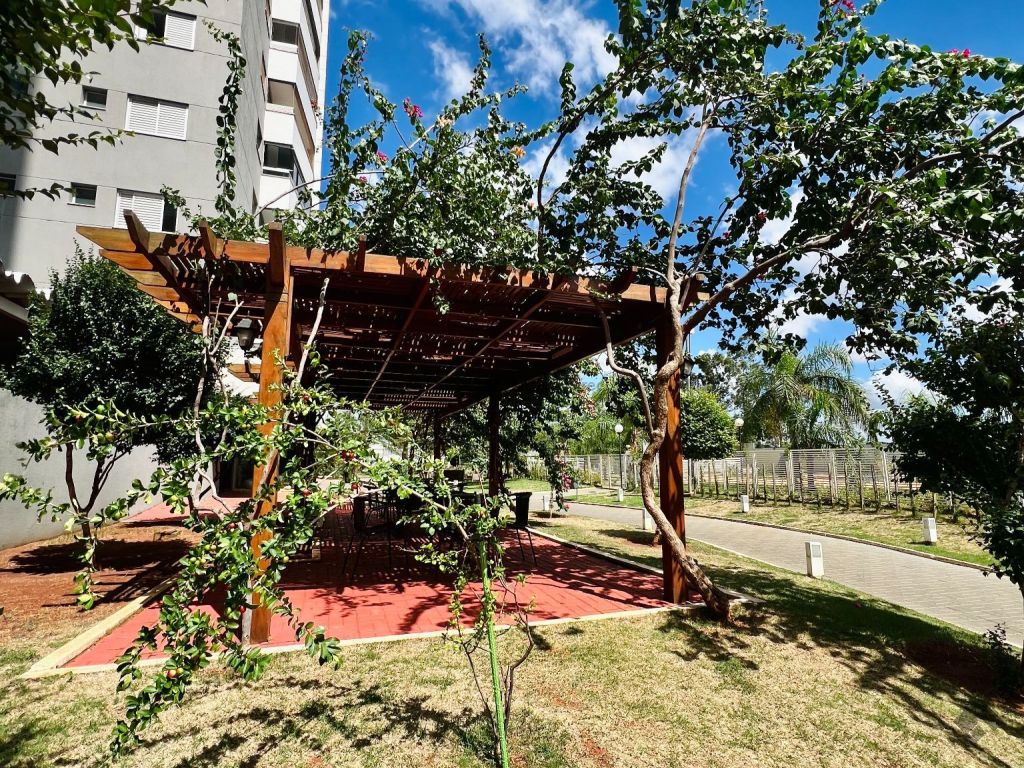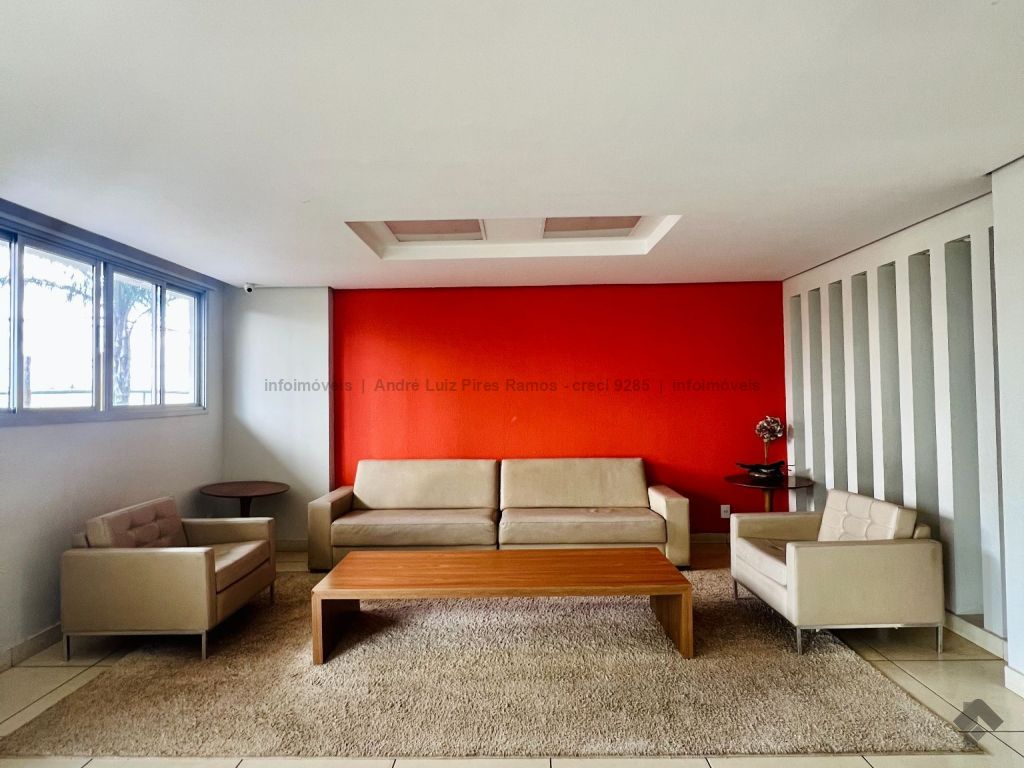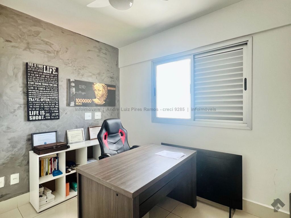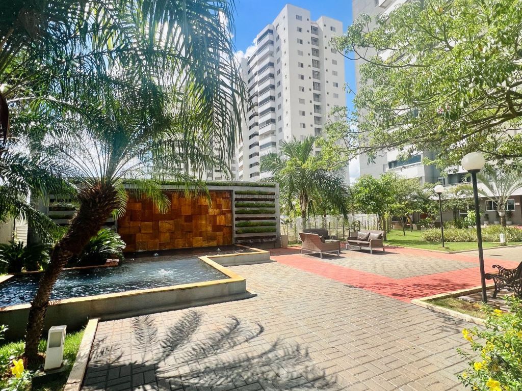 Apartamento mobiliado composto por sala de estar e jantar, cozinha americana com planejados e área de serviço, uma suíte, um quarto com planejados, um banheiro social, sacada e uma vaga de garagem coberta. Mobília inclui dois ares condicionados, um sofá retrátil, um fogão, uma lavadora Samsung, uma TV de 50 polegadas, uma cama de casal, uma cadeira de escritório, uma mesa para escritório, três banquetas e um jogo de cadeiras para varanda.