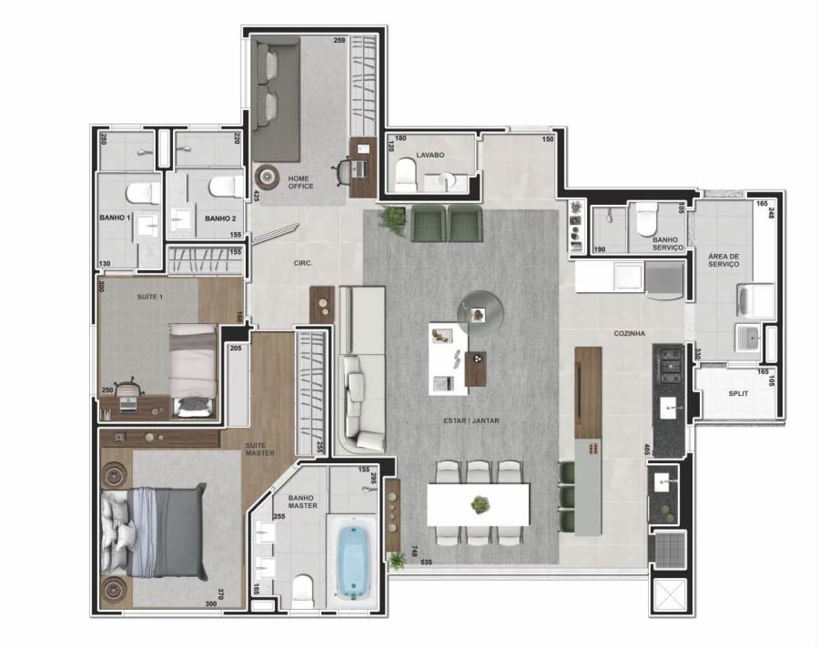 O condomínio Toscana fica em frente à faculdade Uniderp e nos fundos do hipermercado Comper. O apartamento nunca foi habitado e está localizado em andar alto.