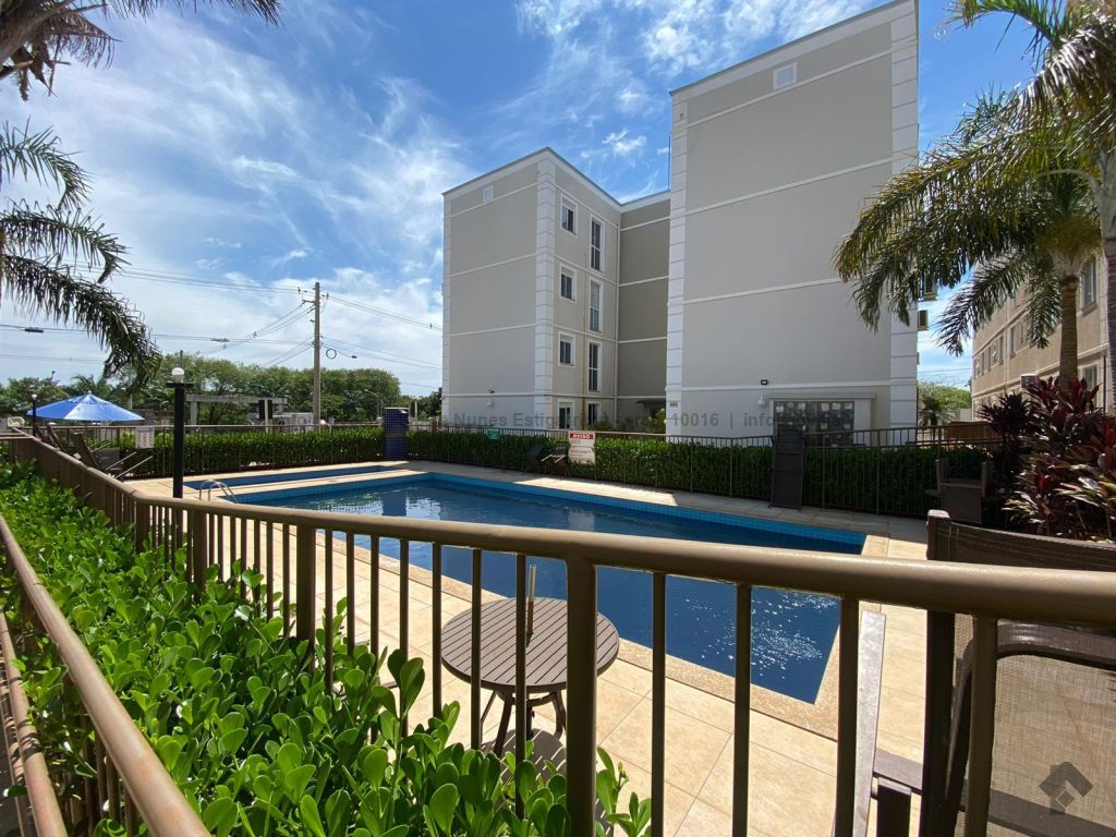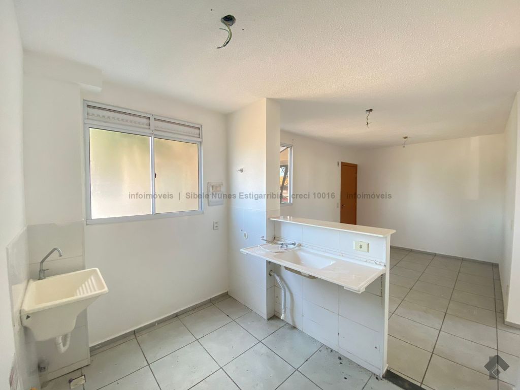 Apartamento térreo, desocupado, com cozinha estilo americano integrada com a área de serviço, sala de TV, 1 banheiro social com box em Blindex, 2 quartos e 1 vaga de garagem descoberta. Será entregue com as luminárias instaladas. O condomínio possui portaria remota, salão de festas, sala de jogos, quiosque com churrasqueira, espaço kids, piscina adulto e infantil.