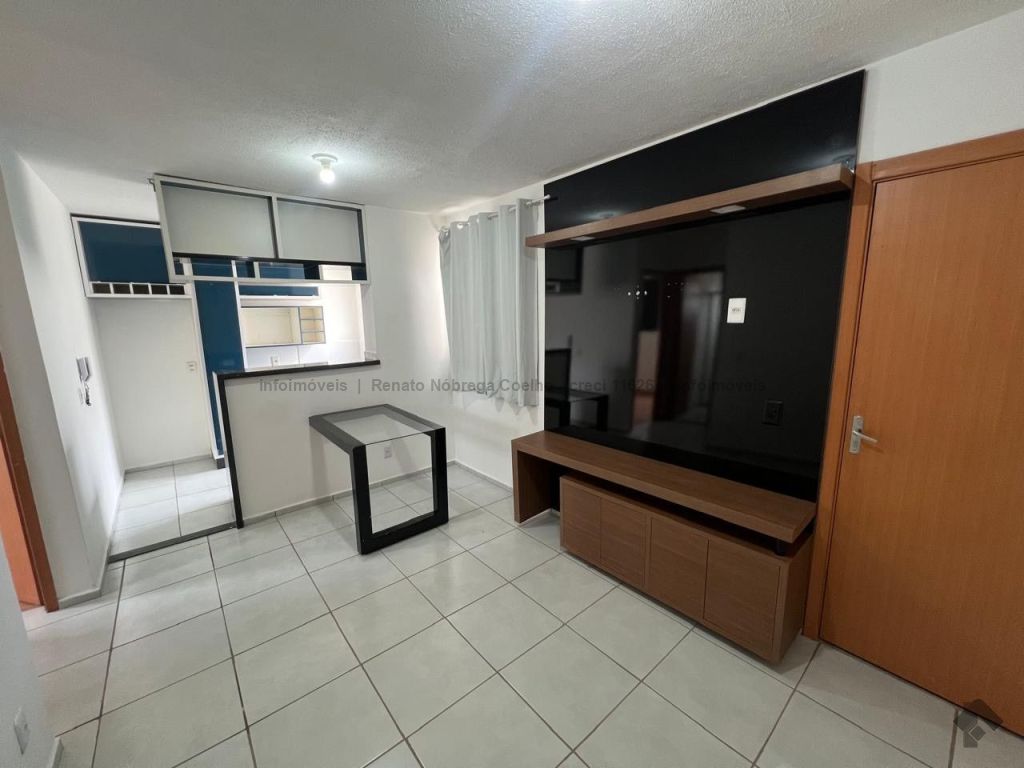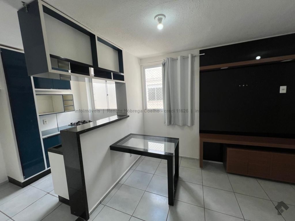 Apartamento com móveis planejados em MDF, ar condicionado split em um dos quartos, sala de estar com painel para TV, 01 quarto com roupeiro, ar split e painel para TV, 01 quarto com roupeiro, cozinha com armários na pia, torre para micro-ondas, nicho para geladeira, paneleiro, despensa, porta mantimentos, banheiro com armário de pia em MDF e box em vidro temperado.