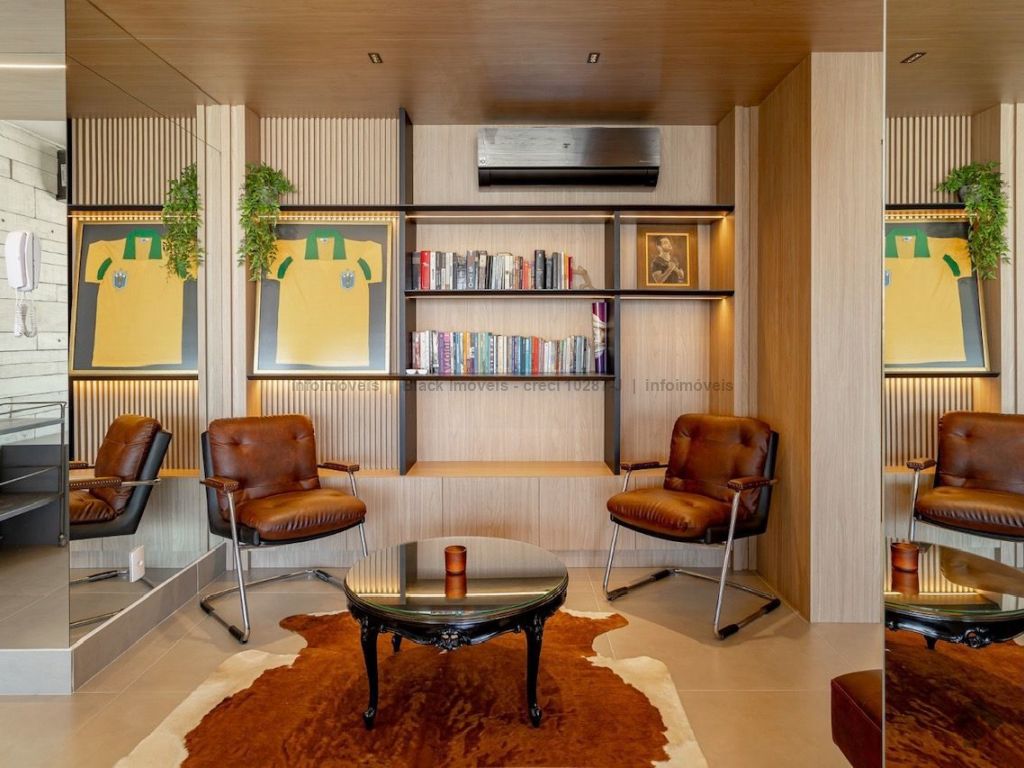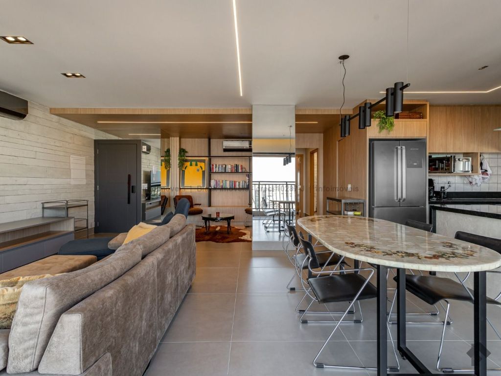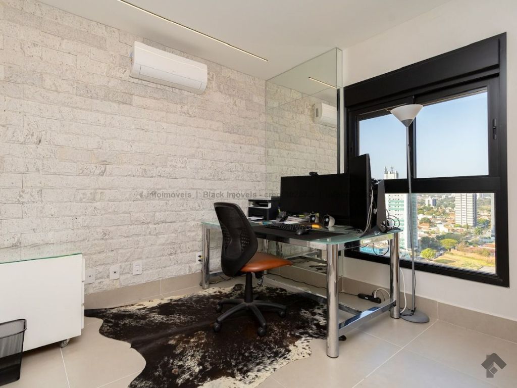 Apartamento projetado com vista para a Afonso Pena, nascente, andar alto. Área social integrada com sala de TV, living, sala de jantar e cozinha. Duas suítes, lavabo, roupeiro, sacada e 2 vagas de garagem (gaveta). Projeto de iluminação, persiana automatizada, split em todos os ambientes, rico em armários.
