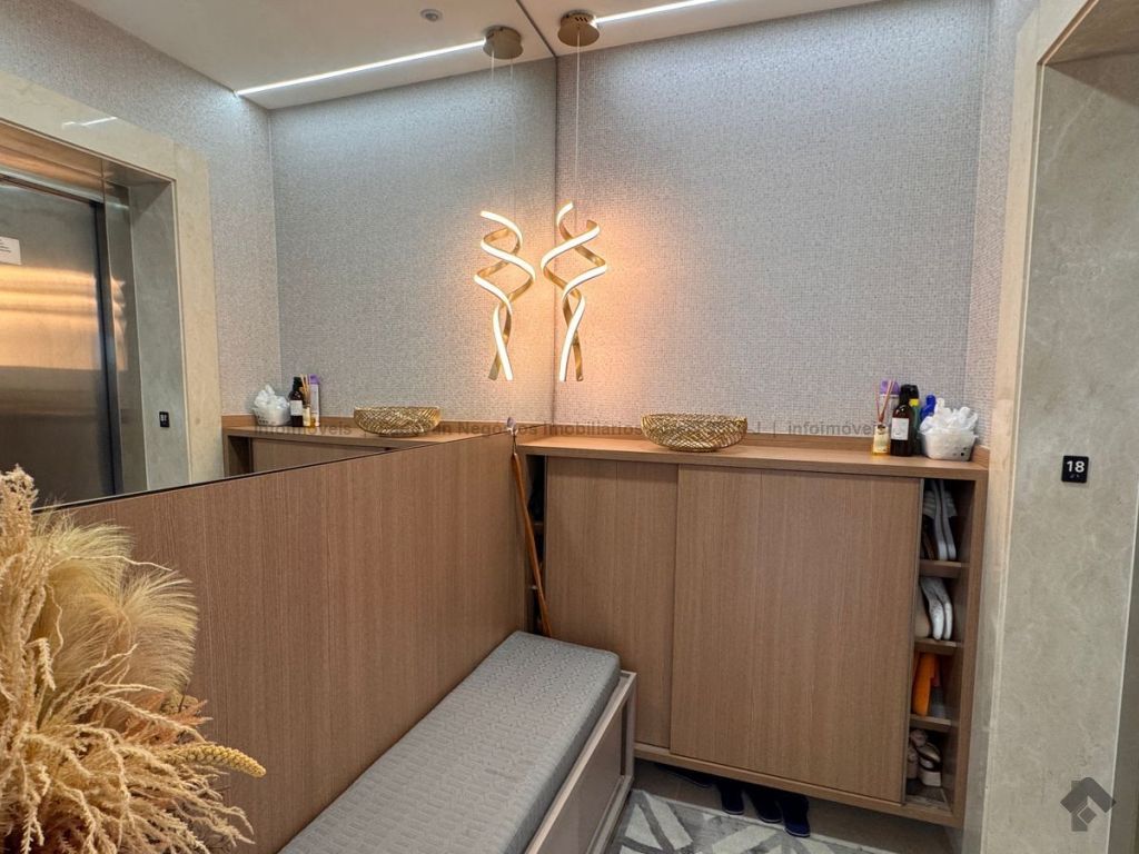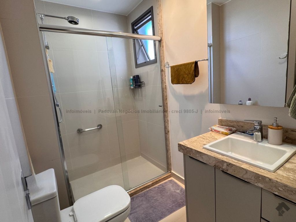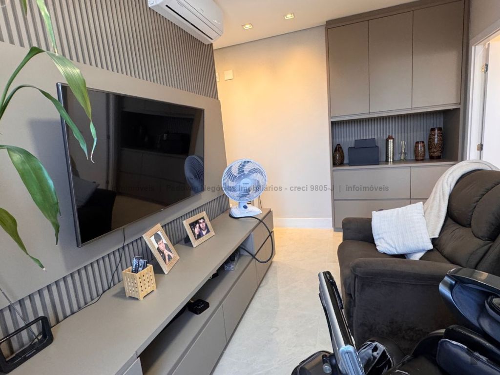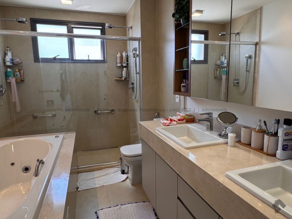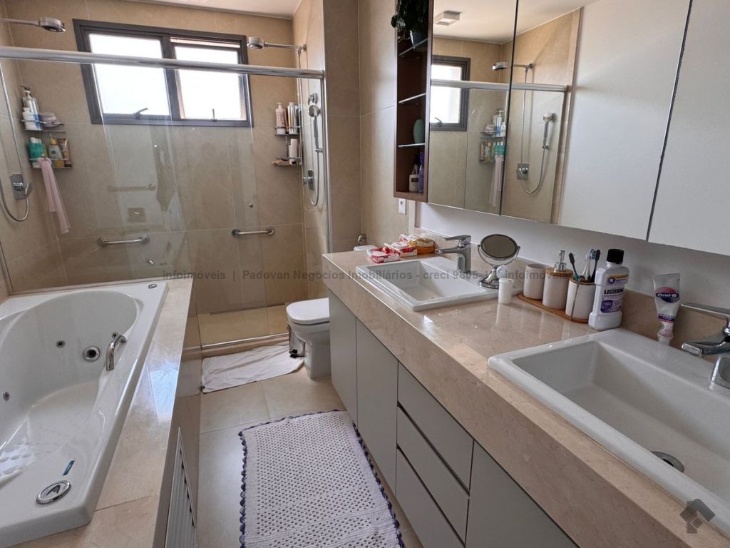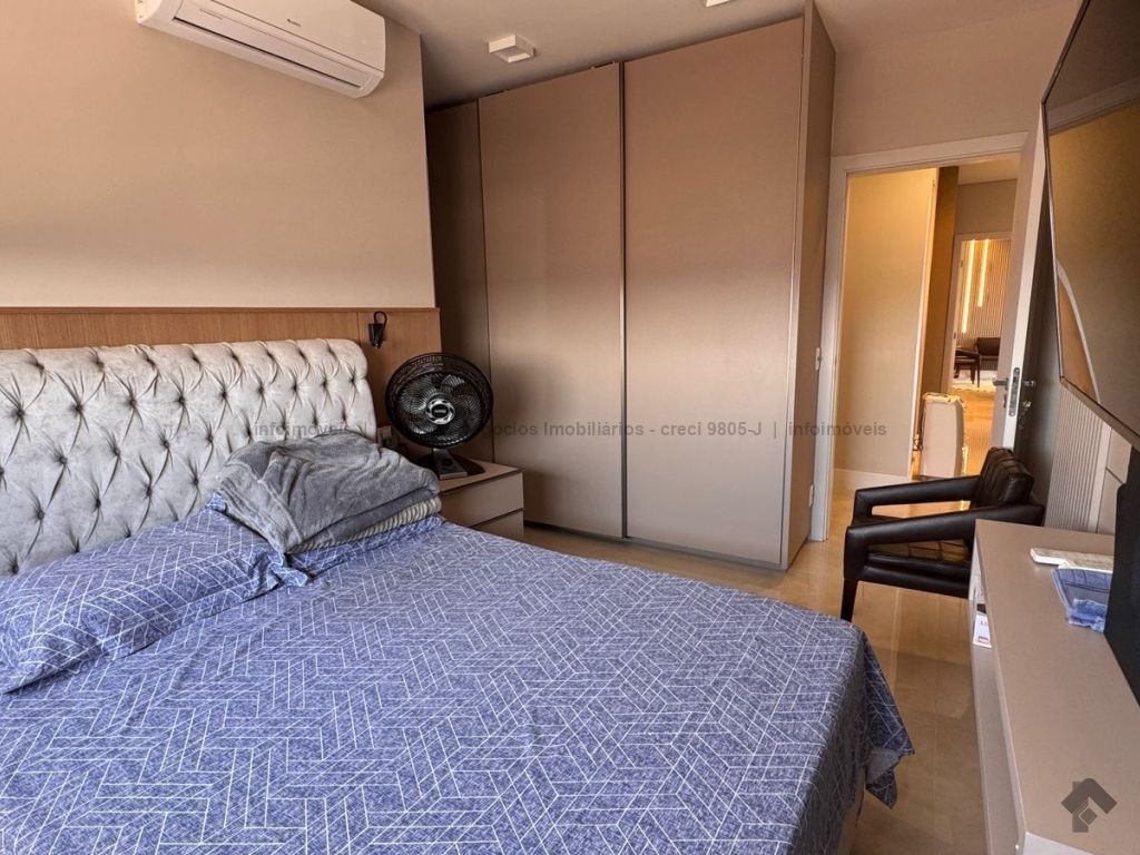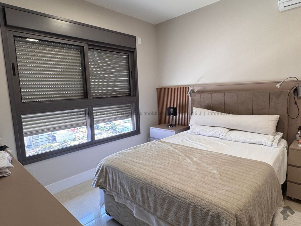 Apartamento com 3 suítes, sendo uma master com hidromassagem e closet, todas com janelas motorizadas e aparelho de ar. Living com sala de estar, de TV, de jantar integrada à cozinha e escritório. 1 WC social, área de serviço com elevador de serviço. 3 vagas de garagem com depósito e ponto de carga para carro elétrico. Bancadas da cozinha e banheiro em pedra Silestone. Condomínio completo, salão de festas, de jogos, piscinas, quadra de esportes, entre outros, edificado pela maior construtora do Estado. Andar alto.